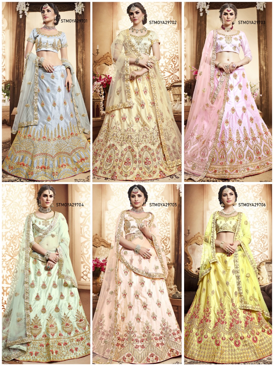 Buy Online Mohey 29701 Series Fancy Designer Party Wear Silk Lehenga Collection Wholesale Supplier And Trader Surat 6 Pcs of Full Catalogue at Wholesale Price. Looking for Mohey 29701 Series Fancy Designer Party Wear Silk Lehenga Collection Wholesale Supplier And Trader Surat Full Catalouge at Best Price? Buy Now Mohey 29701 Series Fancy Designer Party Wear Silk Lehenga Collection Wholesale Supplier And Trader Surat at Wholesale Rate of Rs 9750 with Total 6 Pcs from authroized dealer and supplier of Brand. Cost of Each piece is just only Rs 1625 which is very low and affordable price to resale the product in your retail store ,This is Surat based Wholesale Supplier & Dealer of Brand. Click on Brand name to Know more about Brand's products.Call or Whatsapp on 9898838984 for booking or enquiry