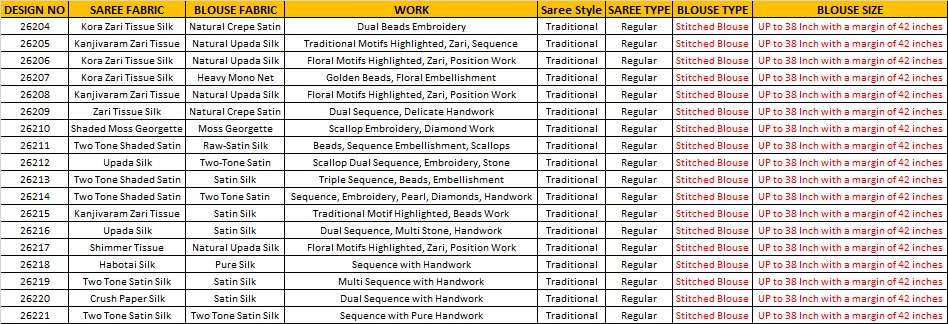 *PRICE :-* *26204-4795/-* *26205-5715/-* *26206-4795/-* *26208-5175/-* *26209-2735/-* *26210-3155/-* *26211-3045/-* *26213-4475/-* *26214-3815/-* *26215-5715/-* *26216-3365/-* *26218-3575/-* *26219-3675/-* *26220-3535/-* *26221-3535/-* +*GST EXTRA*