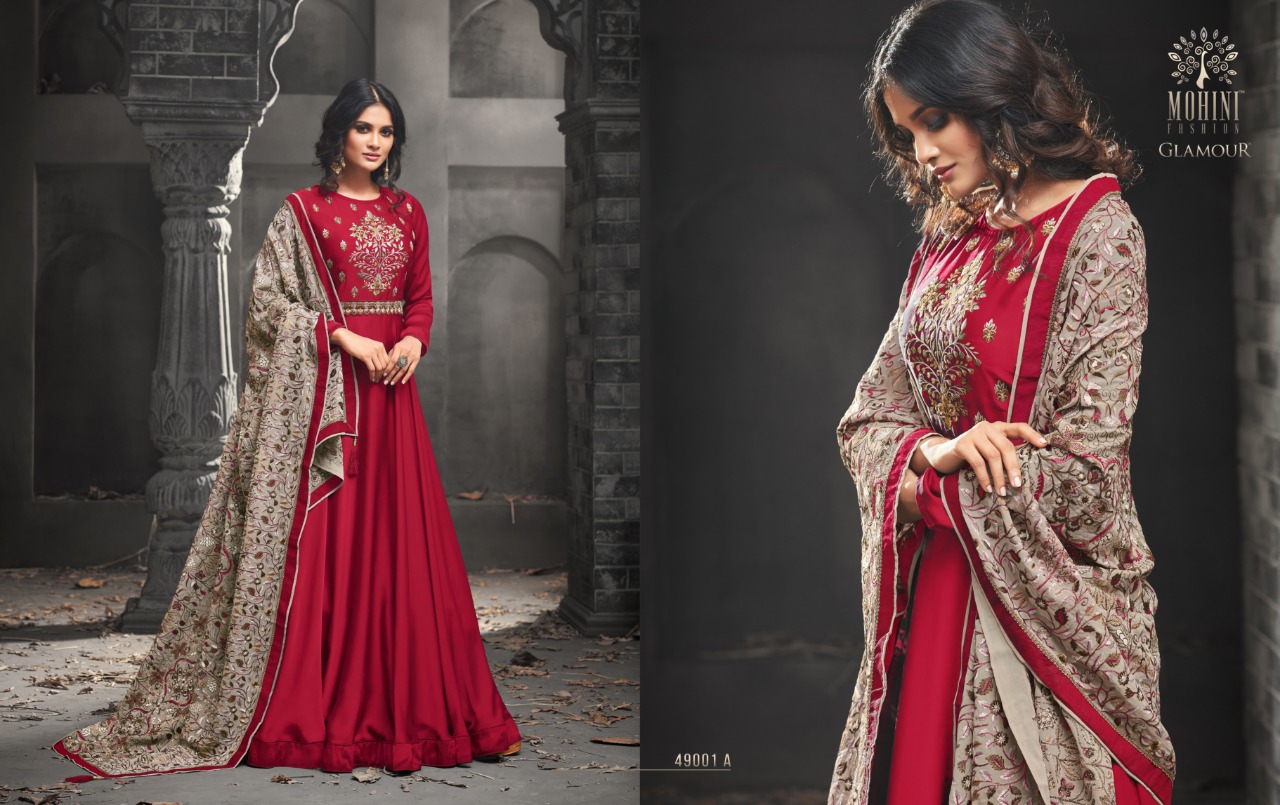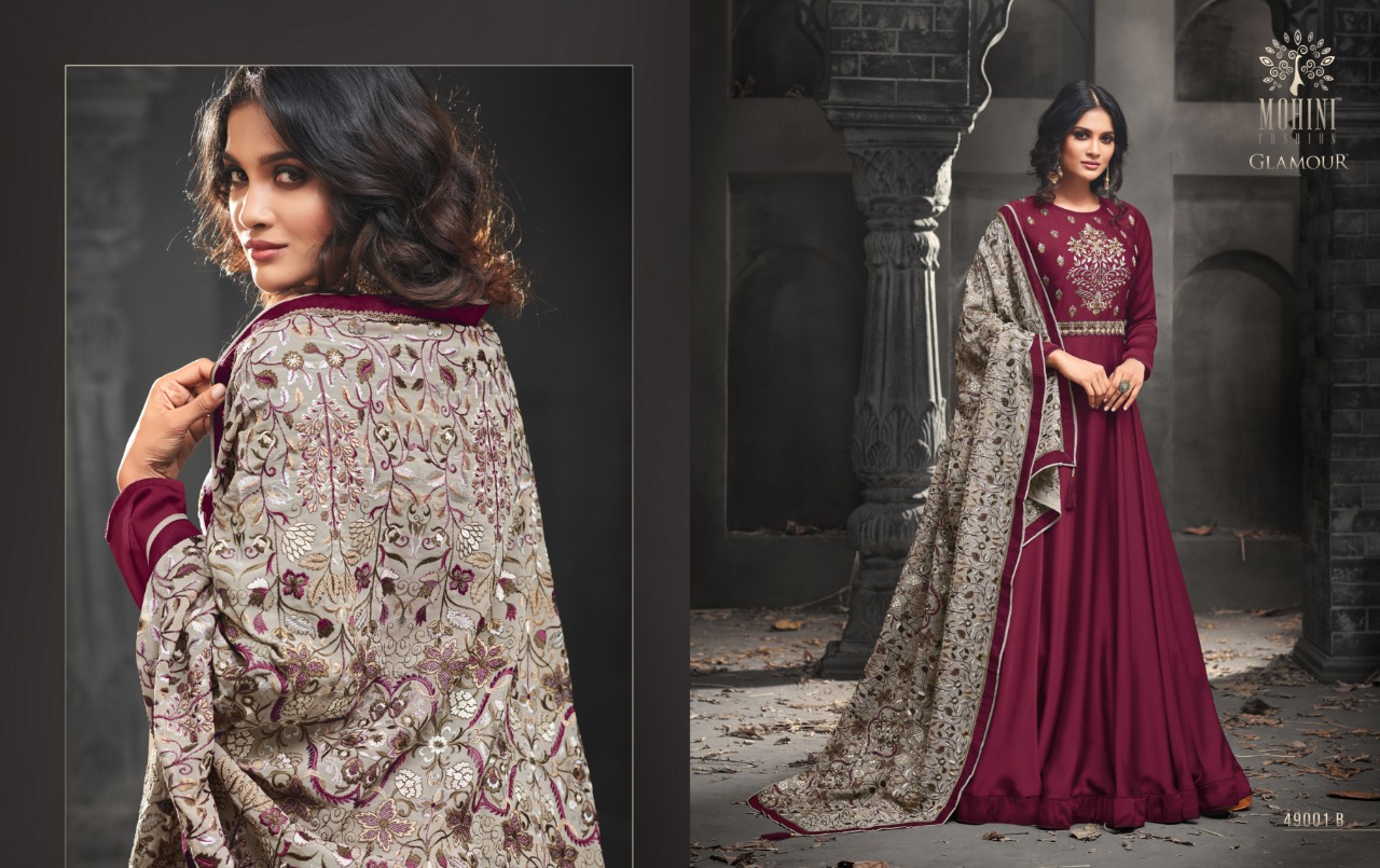 Mohini Fashion Glamour Vol 49 Colour Carnival 49001 Series Designer Gown Suit Collection Wholesale Dealer And Supplier Surat