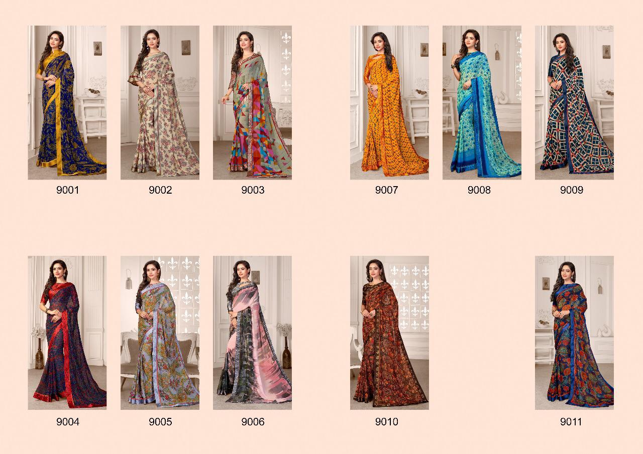 Buy Online Mohini Mantra By Vanishri 9001 Series Heavy Weightless Printed Saree Catlog Wholesaler Surat 11 Pcs of Full Catalogue at Wholesale Price. Looking for Mohini Mantra By Vanishri 9001 Series Heavy Weightless Printed Saree Catlog Wholesaler Surat Full Catalouge at Best Price? Buy Now Mohini Mantra By Vanishri 9001 Series Heavy Weightless Printed Saree Catlog Wholesaler Surat at Wholesale Rate of Rs 7095 with Total 11 Pcs from authroized dealer and supplier of Brand. Cost of Each piece is just only Rs 645 which is very low and affordable price to resale the product in your retail store ,This is Surat based Wholesale Supplier & Dealer of Brand. Click on Brand name to Know more about Brand's products.Call or Whatsapp on 9898838984 for booking or enquiry