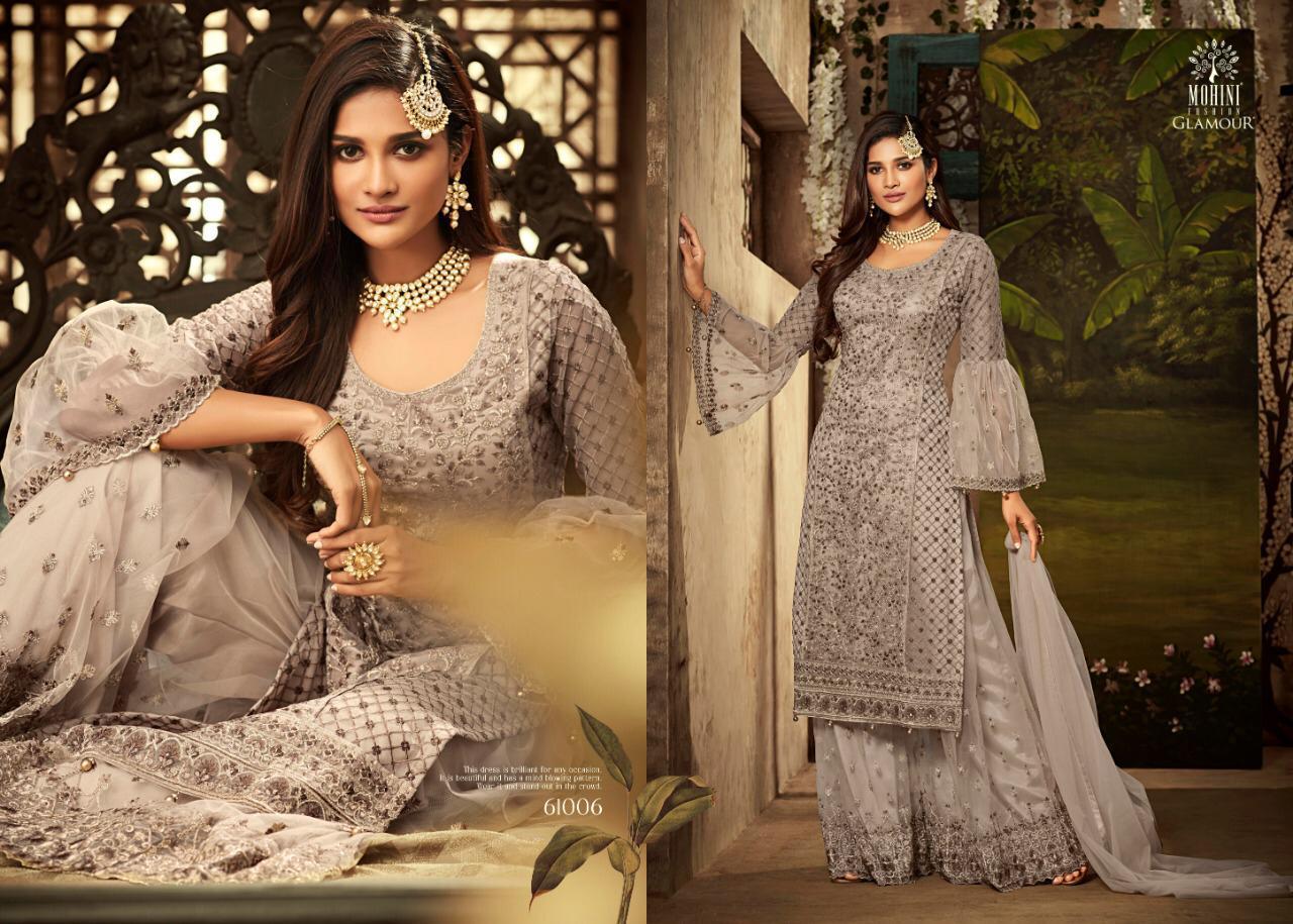 Buy Online Mohini Series 61000 Nx Designer Party Wear Suits Wholesale Supplier Gujarat 4 Pcs of Full Catalogue at Wholesale Price. Looking for Mohini Series 61000 Nx Designer Party Wear Suits Wholesale Supplier Gujarat Full Catalouge at Best Price? Buy Now Mohini Series 61000 Nx Designer Party Wear Suits Wholesale Supplier Gujarat at Wholesale Rate of Rs 8780 with Total 4 Pcs from authroized dealer and supplier of MOHINI FASHIONS Brand. Cost of Each piece is just only Rs 2195 which is very low and affordable price to resale the product in your retail store ,This is Surat based Wholesale Supplier & Dealer of MOHINI FASHIONS Brand. Click on Brand name to Know more about MOHINI FASHIONS Brand's products.Call or Whatsapp on 9898838984 for booking or enquiry