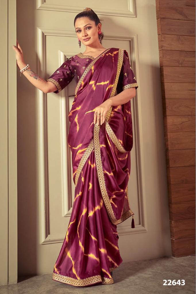 *BRAND NAME : MAHOTSAV* *CATALOG NAME : MOHMANTHAN 22600 C SERIES* *PRICE* : * *22635-1955/-* *22636-1565/-* *22637-1955/-* *22638-1955/-* *22639-1845/-* *22640-1565/-* *22641-1845/-* *22642-1845/-* *22643-1955/-* *+ 05%GST EXTRA* *SAREE FABRIC : ATTACHED* *BLOUSE FABRIC : ATTACHED* *SINGLES & SET WISE AVAILABLE ?* *WORK : ATTACHED* *BLOUSE TYPE : STITCHED* *BLOUSE SIZE : up to 38 Inch with margin of 42 inch* 100+Singles |