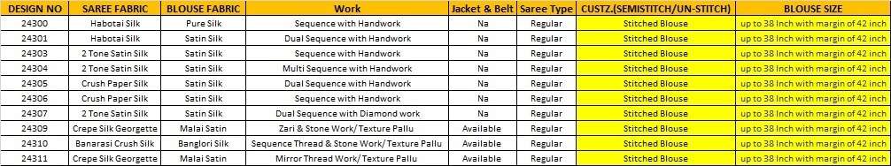 *PRICE* : * *24300-3675/-* *24301-3655/-* *24303-3975/-* *24304-3885/-* *24305-3635/-* *24306-3525/-* *24307-3835/-* *24309-2945/-* *24310-2595/-* *24311-2385/-* *+ 05%GST*