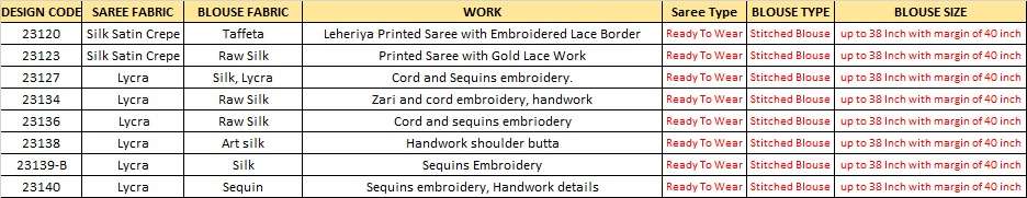 *PRICE :-* *23120-1295/-* *23123-1295/-* *23127-1785/-* *23134-1785/-* *23136-1635/-* *23138-1635/-* *23139-B-1785/-* *23140-1785/-* +*5% GST EXTRA*