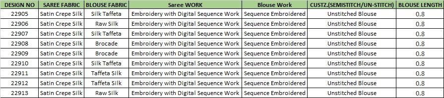 *BRAND NAME : MAHOTSAV* *CATALOG NAME : MOHMANTHAN 22900 YAVANIKA* *SAREE FABRIC : Satin Crepe Silk* *BLOUSE FABRIC : ATTACHED* *WORK : ATTACHED* *PRICE* : *22905-3535/-* *22906-3155/-* *22907-3155/-* *22908-2915/-* *22909-2345/-* *22910-3155/-* *22911-3425/-* *22912-3435/-* *22913-3075/-* + *5% GST EXTRA* SINGLE AVAILABLE 100+Singles |