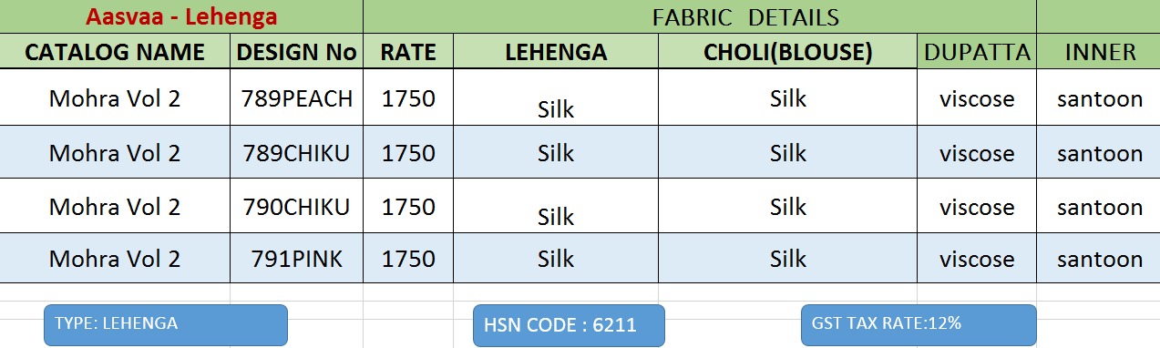 Buy Online Mohra Vol 2 Silk With Beautiful Work Wedding Wear Special Occasion Wear Designer Lehngas Wholesale Supplier And Dealer Surat 4 Pcs of Full Catalogue at Wholesale Price. Looking for Mohra Vol 2 Silk With Beautiful Work Wedding Wear Special Occasion Wear Designer Lehngas Wholesale Supplier And Dealer Surat Full Catalouge at Best Price? Buy Now Mohra Vol 2 Silk With Beautiful Work Wedding Wear Special Occasion Wear Designer Lehngas Wholesale Supplier And Dealer Surat at Wholesale Rate of Rs 7000 with Total 4 Pcs from authroized dealer and supplier of Brand. Cost of Each piece is just only Rs 1750 which is very low and affordable price to resale the product in your retail store ,This is Surat based Wholesale Supplier & Dealer of Brand. Click on Brand name to Know more about Brand's products.Call or Whatsapp on 9898838984 for booking or enquiry