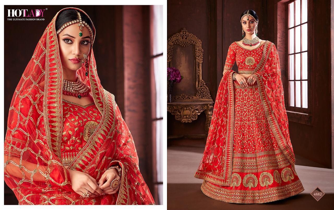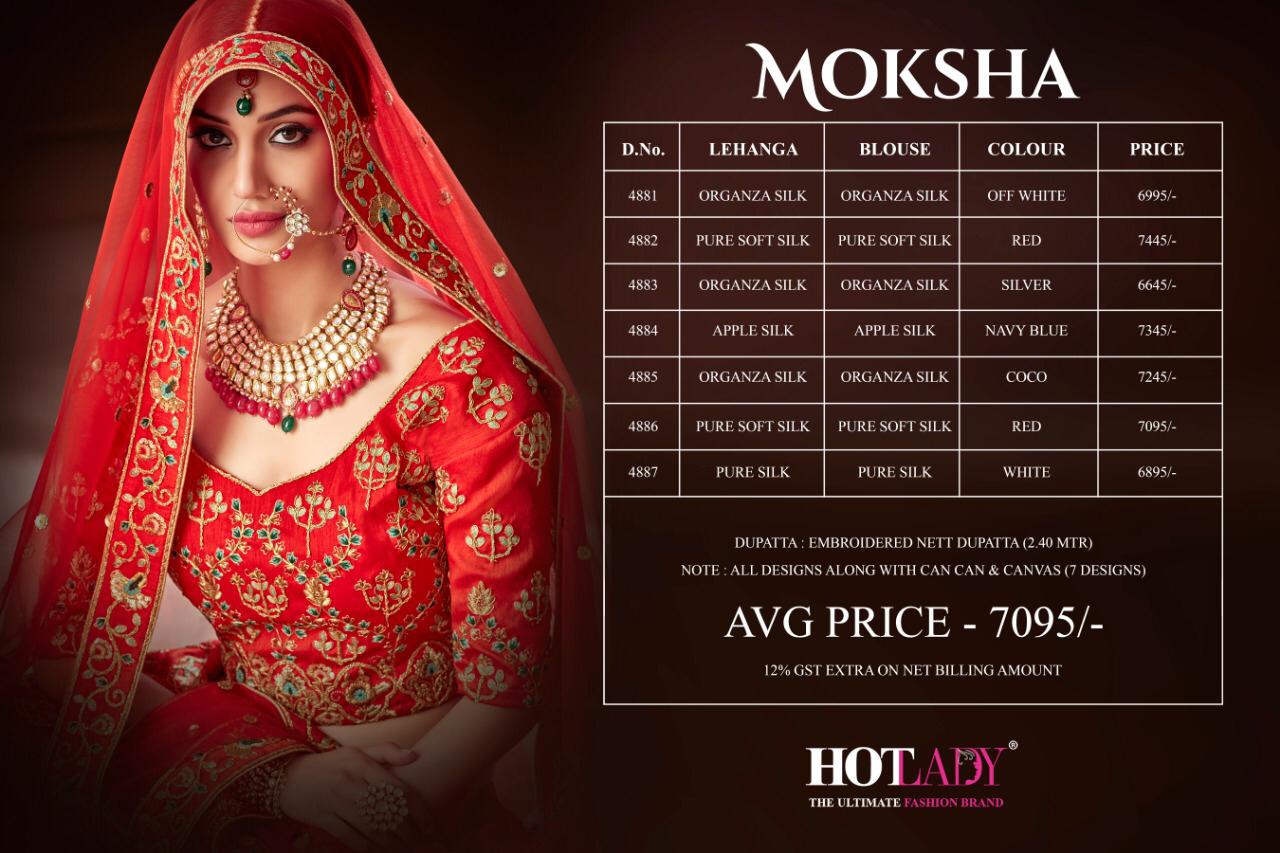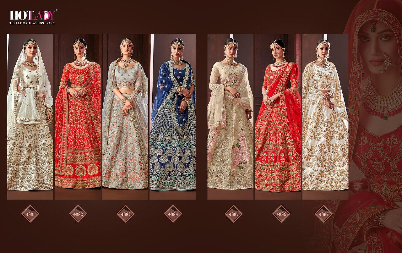 Buy Online Moksha By Hotlady 4881 Series Fancy Deaigner Bridal Party Wear Lehenga Cholli Collection Wholesale Dealer Surat 7 Pcs of Full Catalogue at Wholesale Price. Looking for Moksha By Hotlady 4881 Series Fancy Deaigner Bridal Party Wear Lehenga Cholli Collection Wholesale Dealer Surat Full Catalouge at Best Price? Buy Now Moksha By Hotlady 4881 Series Fancy Deaigner Bridal Party Wear Lehenga Cholli Collection Wholesale Dealer Surat at Wholesale Rate of Rs 49665 with Total 7 Pcs from authroized dealer and supplier of HOTLADY Brand. Cost of Each piece is just only Rs 7095 which is very low and affordable price to resale the product in your retail store ,This is Surat based Wholesale Supplier & Dealer of HOTLADY Brand. Click on Brand name to Know more about HOTLADY Brand's products.Call or Whatsapp on 9898838984 for booking or enquiry