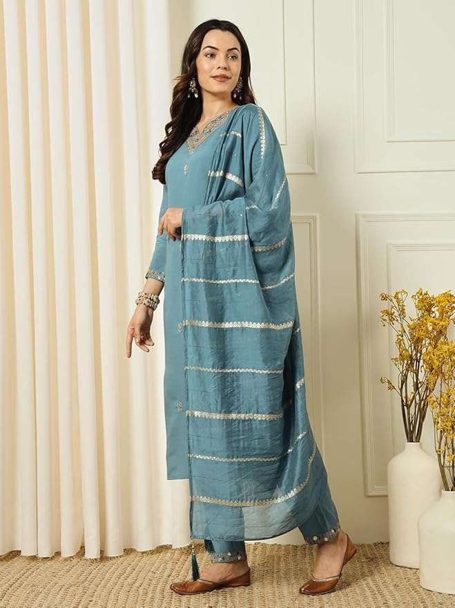 Mona Aqua Blue Red chanderi kurti collection manufacturer surat