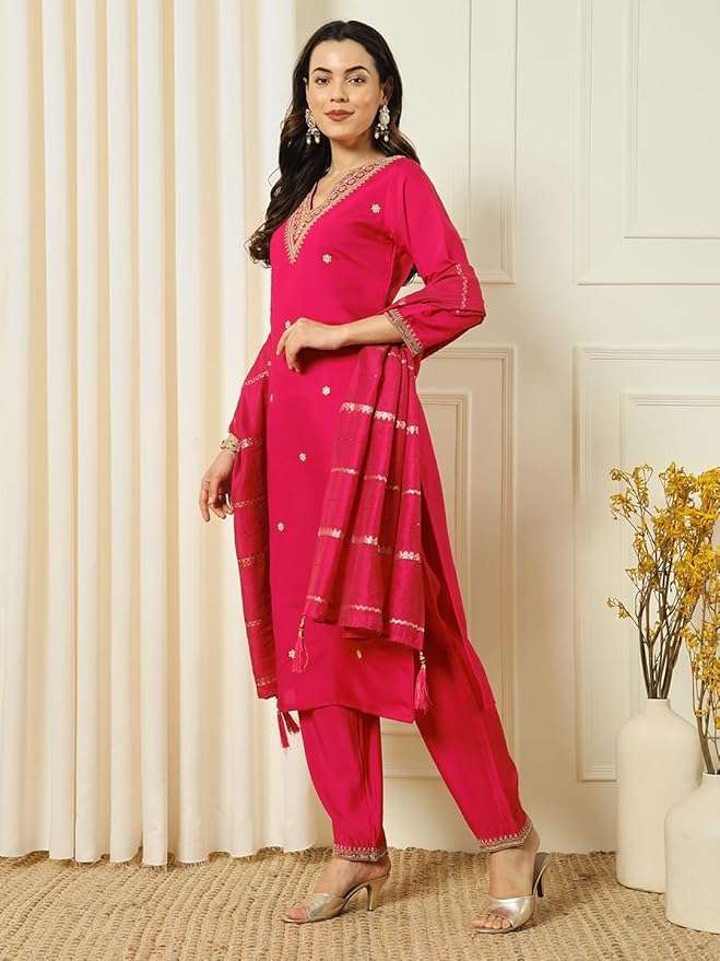 *Dupatta Details* - *Material:* Cotton silk with sequins and zari - *Length:* 2.20 meters |
