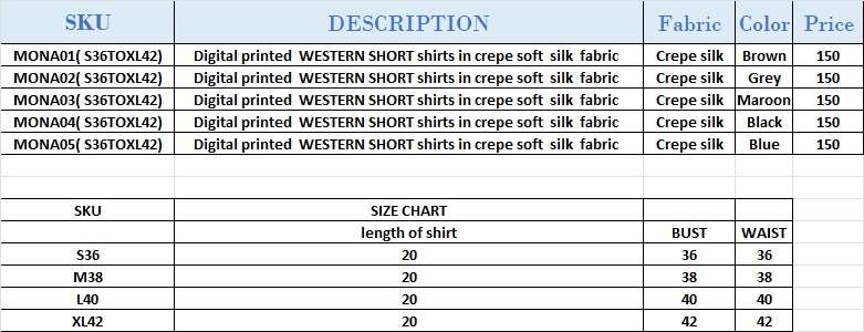 Buy Online MONA SERIES 01 TO 05 by HYPNOTEX shirt collection manufacturers surat 5 Pcs of Full Catalogue at Wholesale Price. Looking for MONA SERIES 01 TO 05 by HYPNOTEX shirt collection manufacturers surat Full Catalouge at Best Price? Buy Now MONA SERIES 01 TO 05 by HYPNOTEX shirt collection manufacturers surat at Wholesale Rate of Rs 0 with Total 5 Pcs from authroized dealer and supplier of BRAND'S Brand. Cost of Each piece is just only Rs 0 which is very low and affordable price to resale the product in your retail store ,This is Surat based Wholesale Supplier & Dealer of BRAND'S Brand. Click on Brand name to Know more about BRAND'S Brand's products.Call or Whatsapp on 9898838984 for booking or enquiry