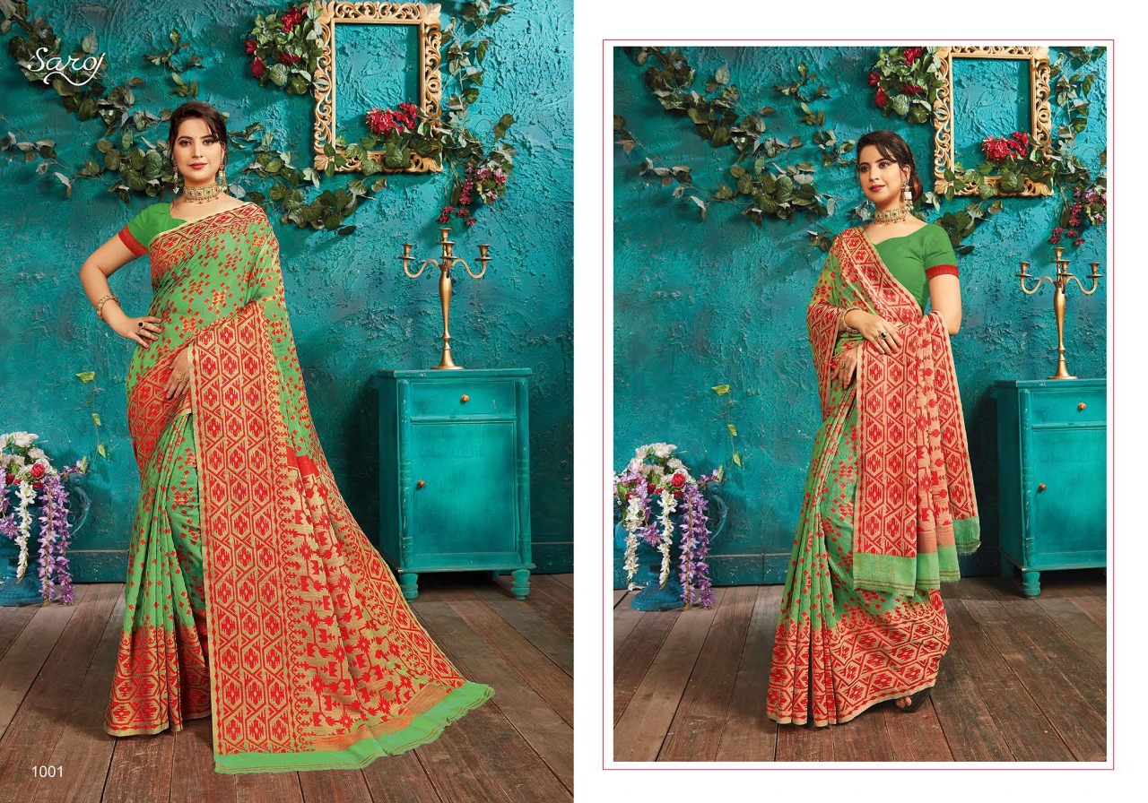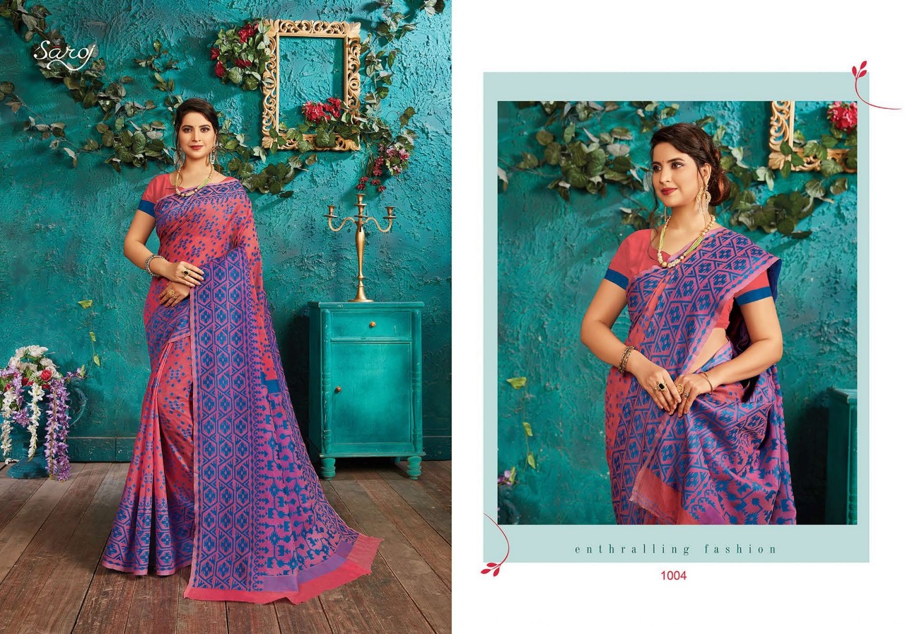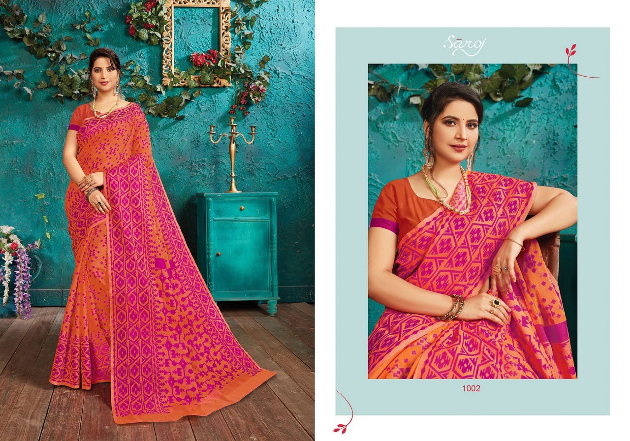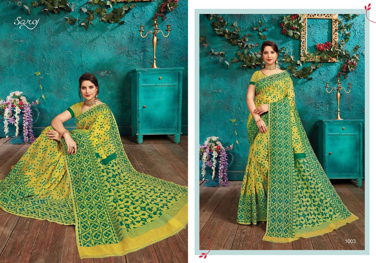 Buy Online Monisha 1 By Saroj Cotton Sarees Wholesale Supplier And Surat 4 Pcs of Full Catalogue at Wholesale Price. Looking for Monisha 1 By Saroj Cotton Sarees Wholesale Supplier And Surat Full Catalouge at Best Price? Buy Now Monisha 1 By Saroj Cotton Sarees Wholesale Supplier And Surat at Wholesale Rate of Rs 2300 with Total 4 Pcs from authroized dealer and supplier of SAROJ SAREE Brand. Cost of Each piece is just only Rs 575 which is very low and affordable price to resale the product in your retail store ,This is Surat based Wholesale Supplier & Dealer of SAROJ SAREE Brand. Click on Brand name to Know more about SAROJ SAREE Brand's products.Call or Whatsapp on 9898838984 for booking or enquiry