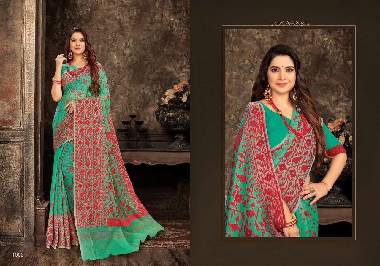 *Monisha - 3 by Saroj * Rate - 575 per pcs . Fabric: Cotton base Blouse: Cotton. 4 Designs in set Set to set . Delivery from today |