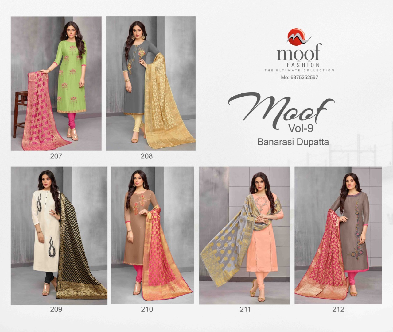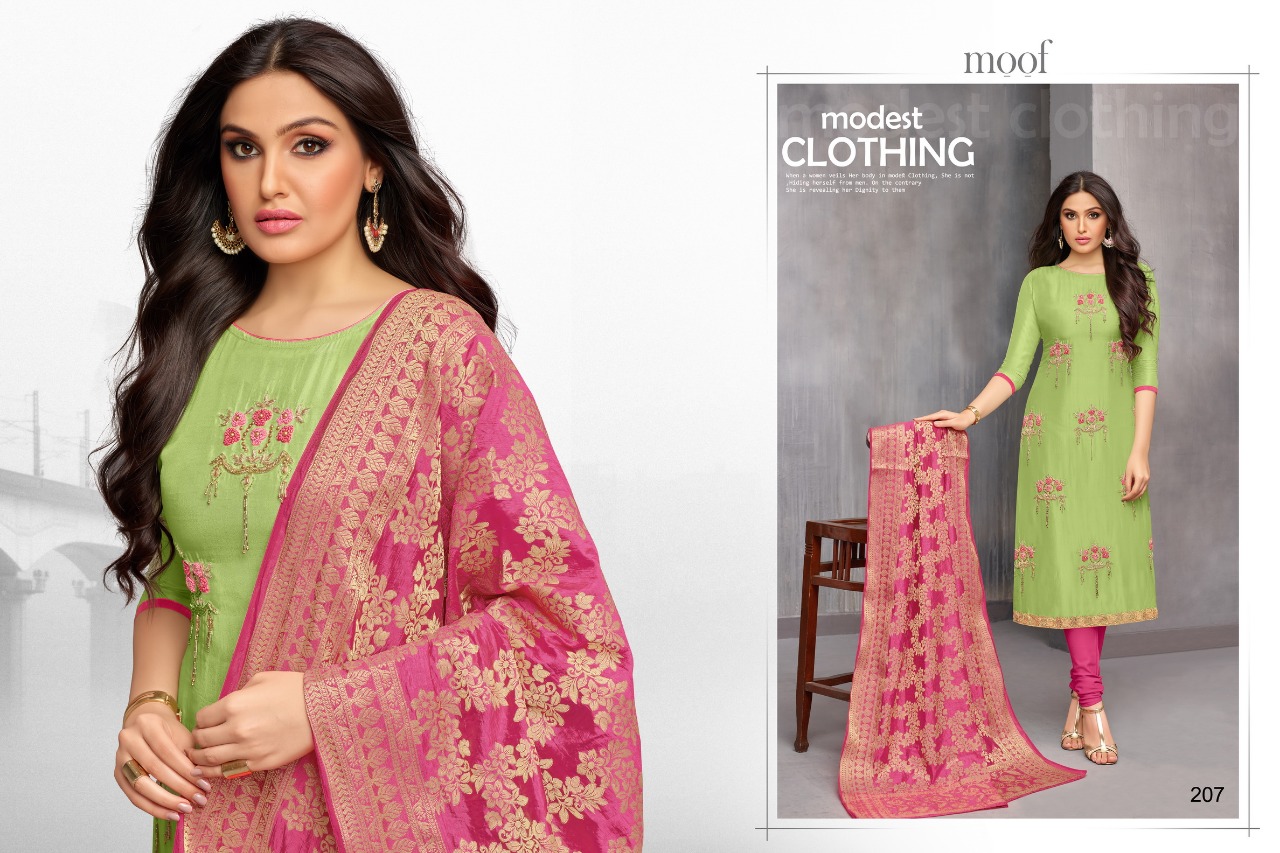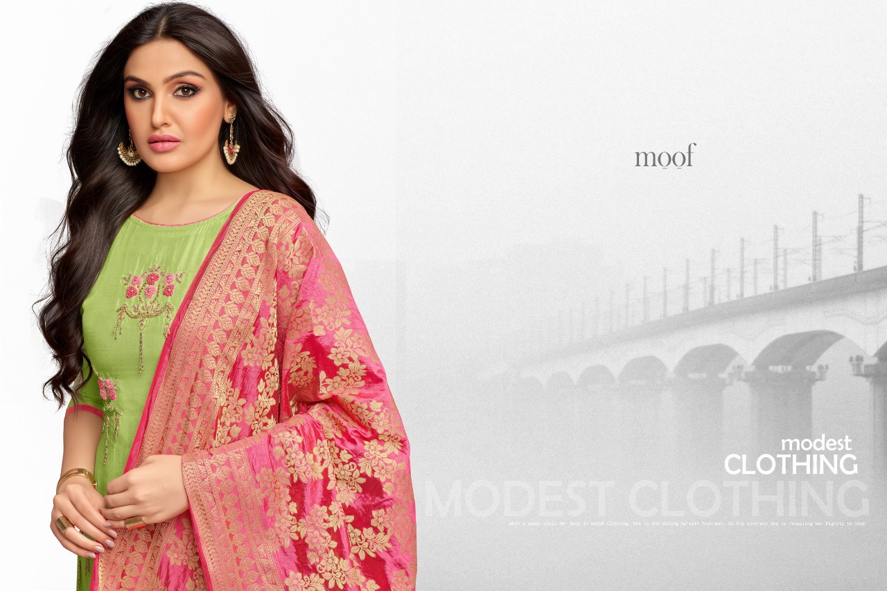 Moof fashion Moof vol_9 ( Banarsi duppta) Top_ maslin cottan Bottam_ havy cottan Duppta_ banarsi duppta exclusive Rate_799/- Djn_ 6 djn Delvy_ 30-8-18 Gst extra |