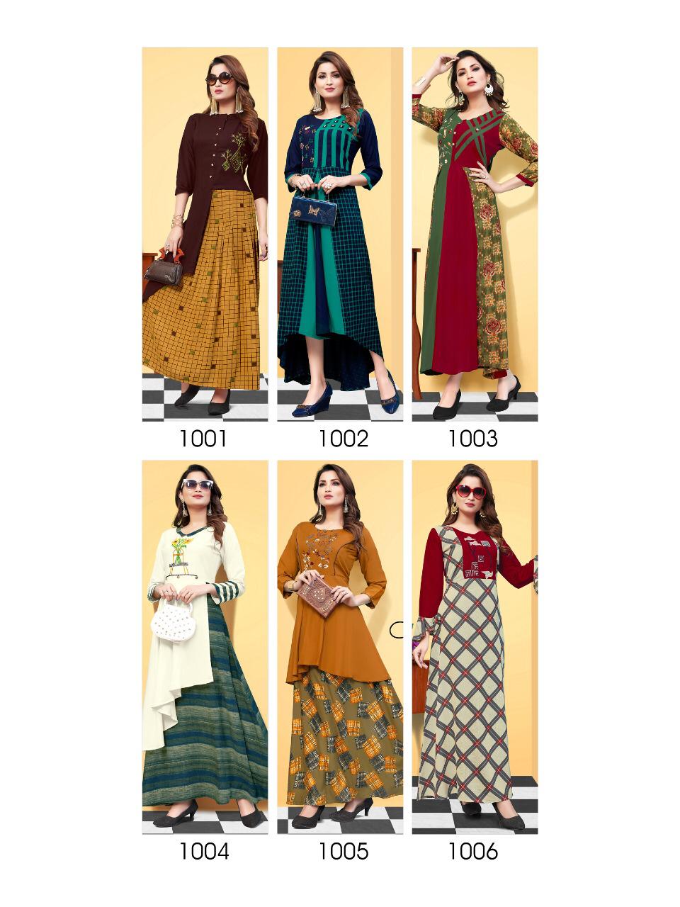 Buy Online Moon Walk By Cygnus 1001 Series Heavy Reyon Printed Kurti Catlog Wholesaler Surat 6 Pcs of Full Catalogue at Wholesale Price. Looking for Moon Walk By Cygnus 1001 Series Heavy Reyon Printed Kurti Catlog Wholesaler Surat Full Catalouge at Best Price? Buy Now Moon Walk By Cygnus 1001 Series Heavy Reyon Printed Kurti Catlog Wholesaler Surat at Wholesale Rate of Rs 3990 with Total 6 Pcs from authroized dealer and supplier of Brand. Cost of Each piece is just only Rs 665 which is very low and affordable price to resale the product in your retail store ,This is Surat based Wholesale Supplier & Dealer of Brand. Click on Brand name to Know more about Brand's products.Call or Whatsapp on 9898838984 for booking or enquiry