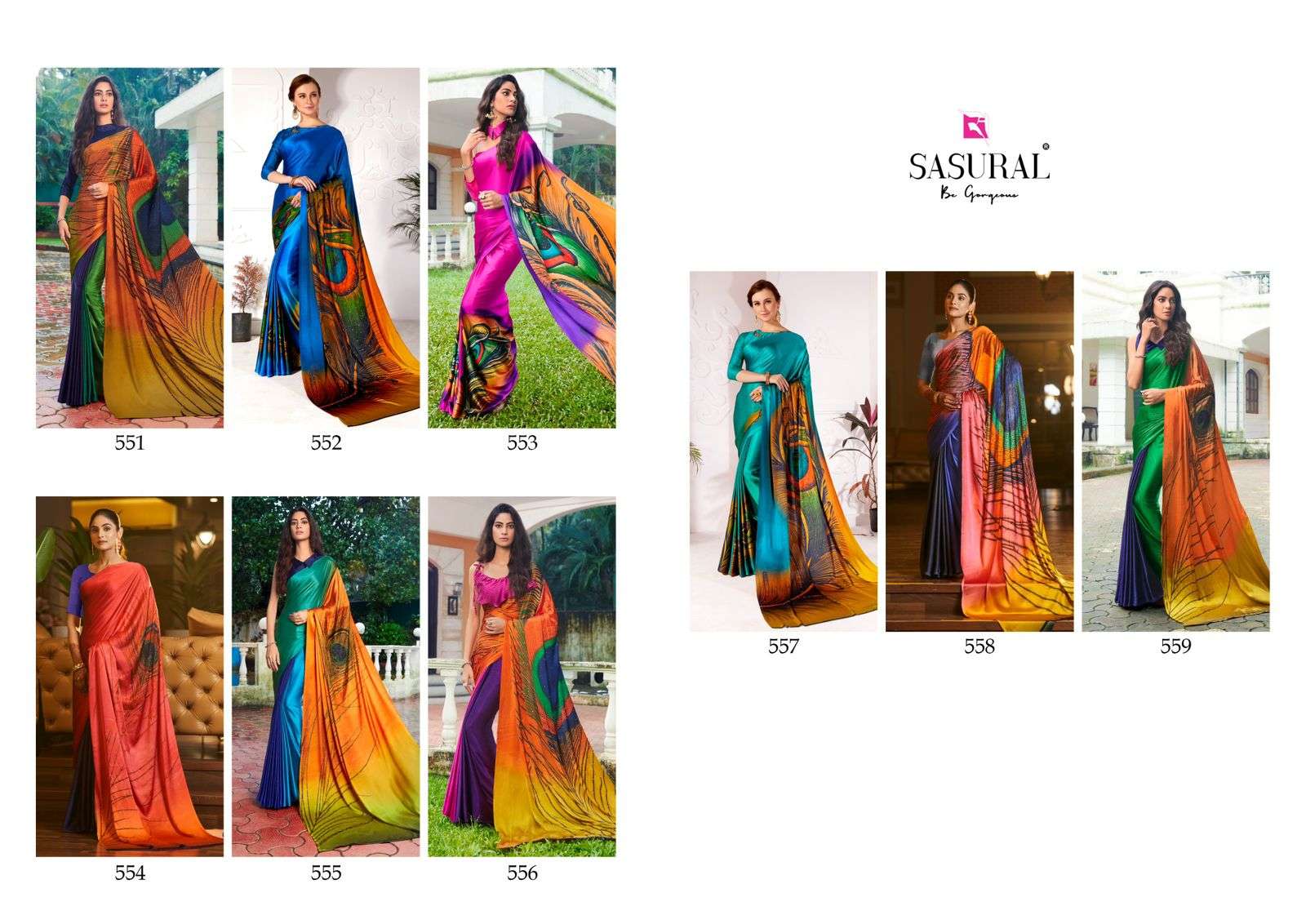 MOR PANKH SERIES 551 TO 559 by SASURAL Satin Silk saree collection manufacturer Surat