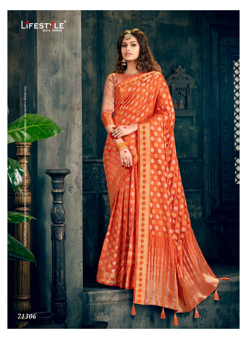 Brand = LIFESTYLE Catalog :- *MORPANKH* Volume :- 1 Fabric :- *NYLONE SILK* Packing :- BOX Ex-mill Price :- *1301 per pcs * /- Cut/Length :- 6.40 Set to set FANCY NYLONE SILK RICH PALLU SAREE PACKING - Today |