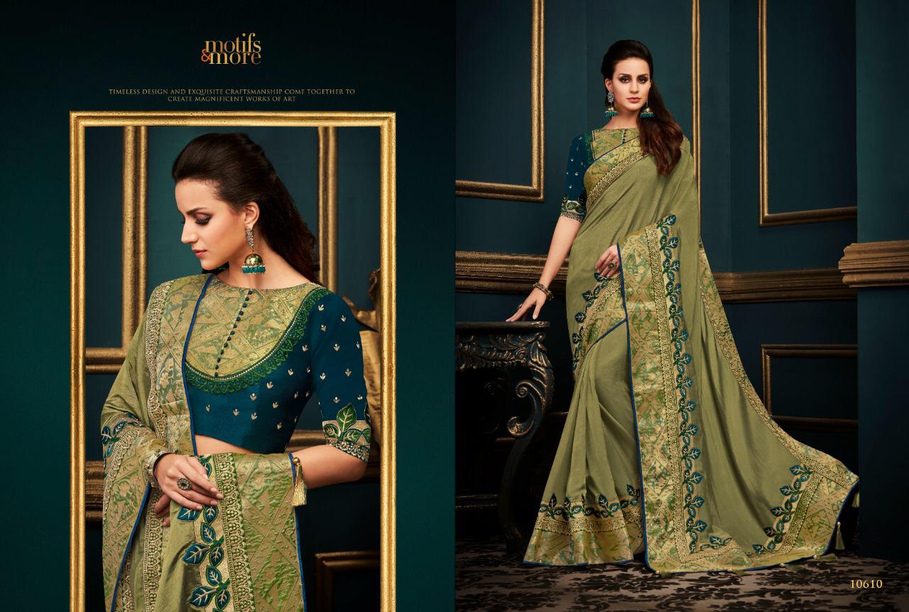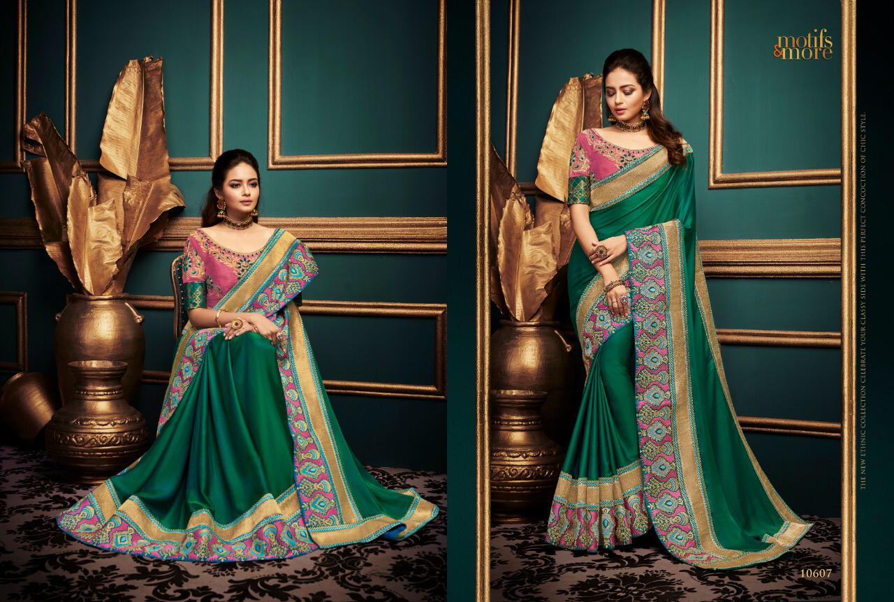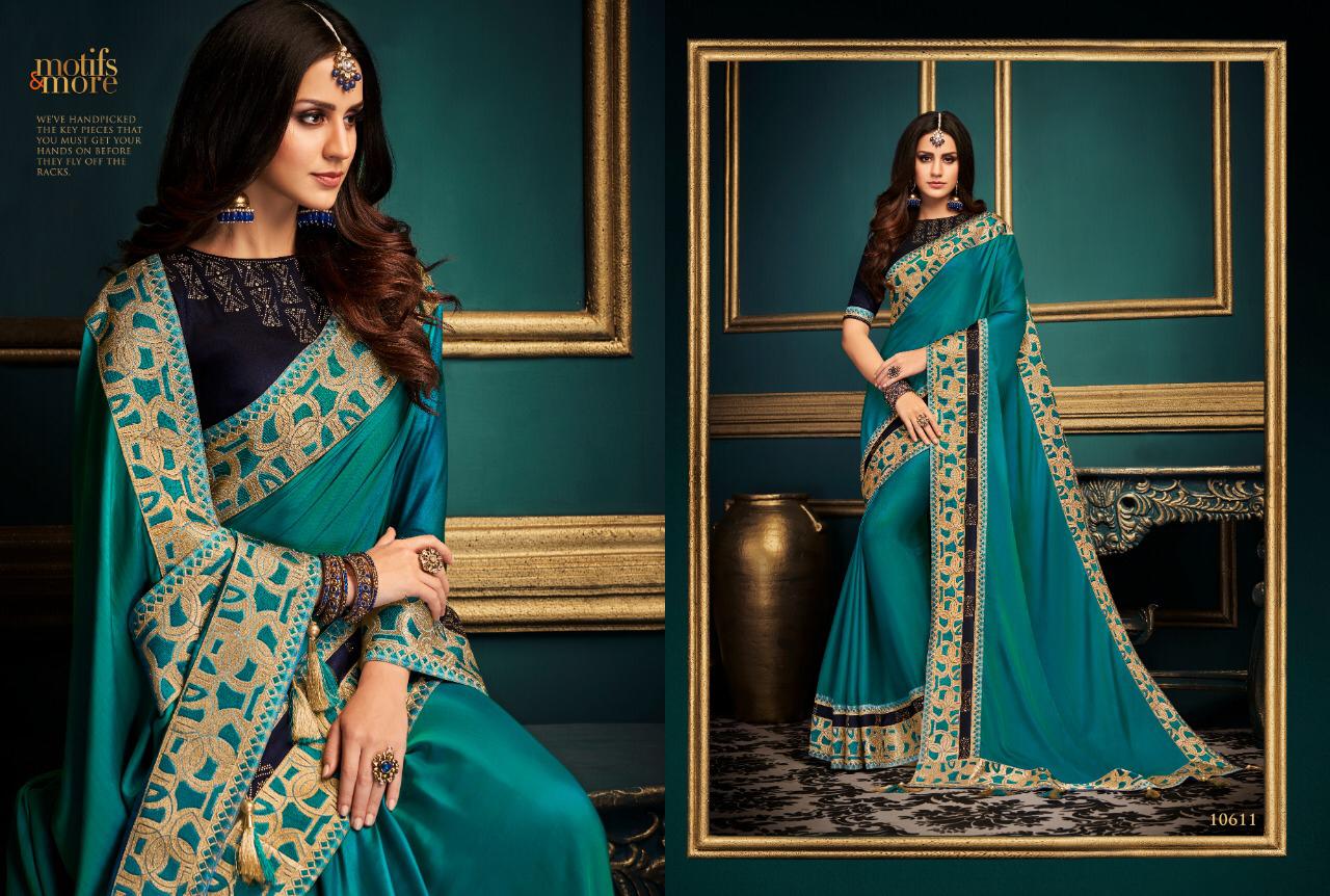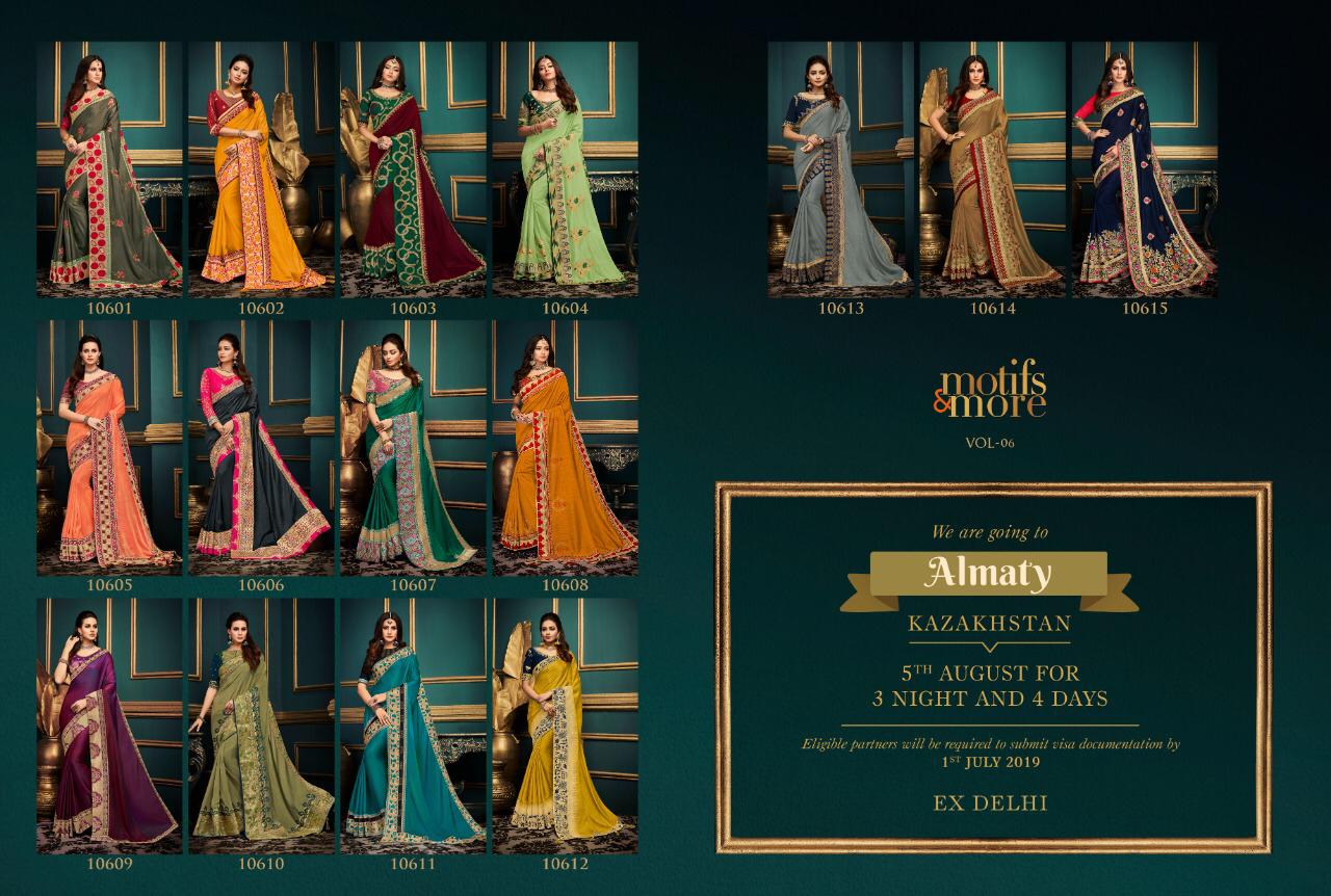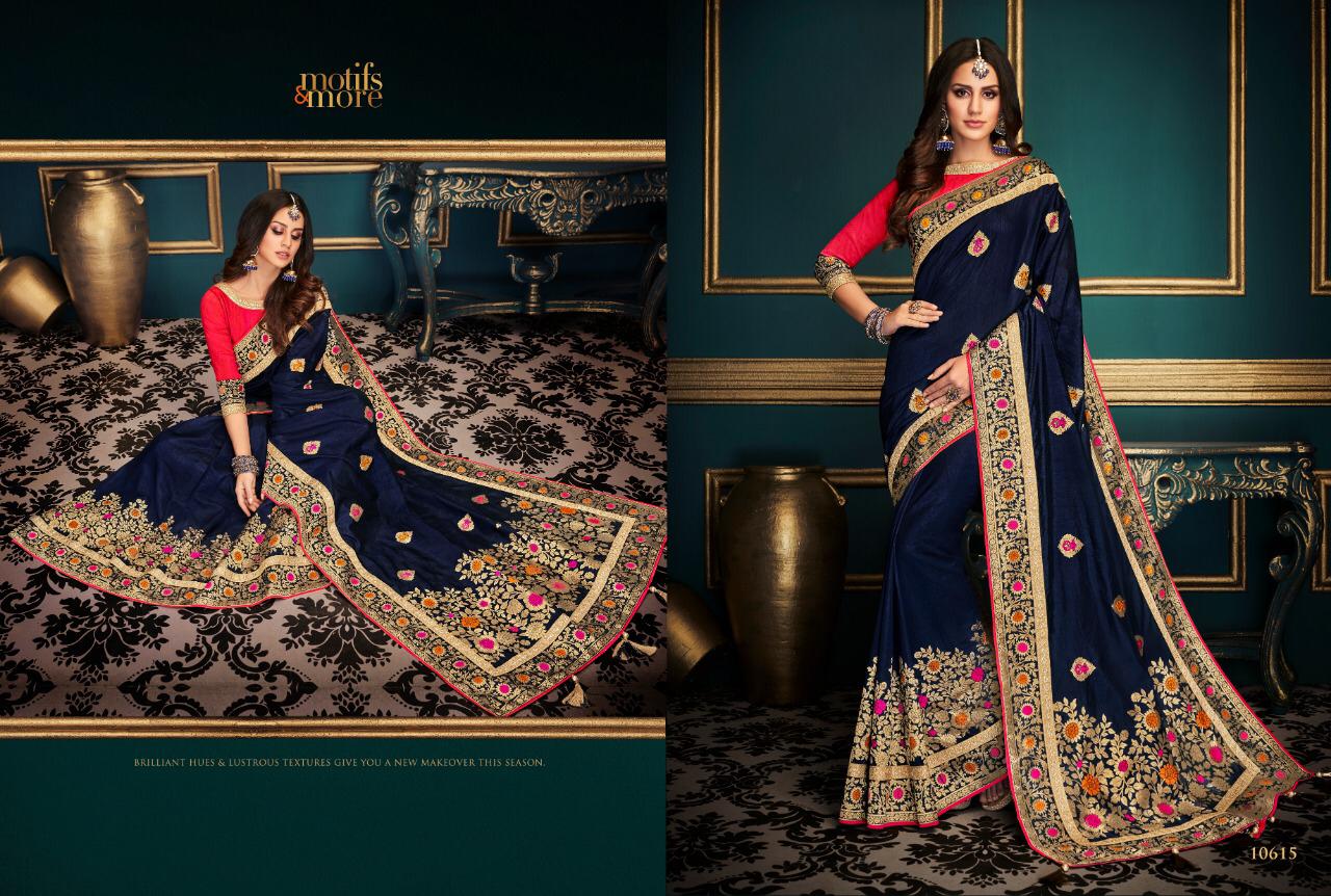 Motifs and more 10601 to 10615 fancy Designer Party wear sarees Wholesale supplier nitya nx Brand - Motifs & More . Catlog series -10601 to 10615. * set & Loose & Singel & Multiple * Delivery 2 days . |