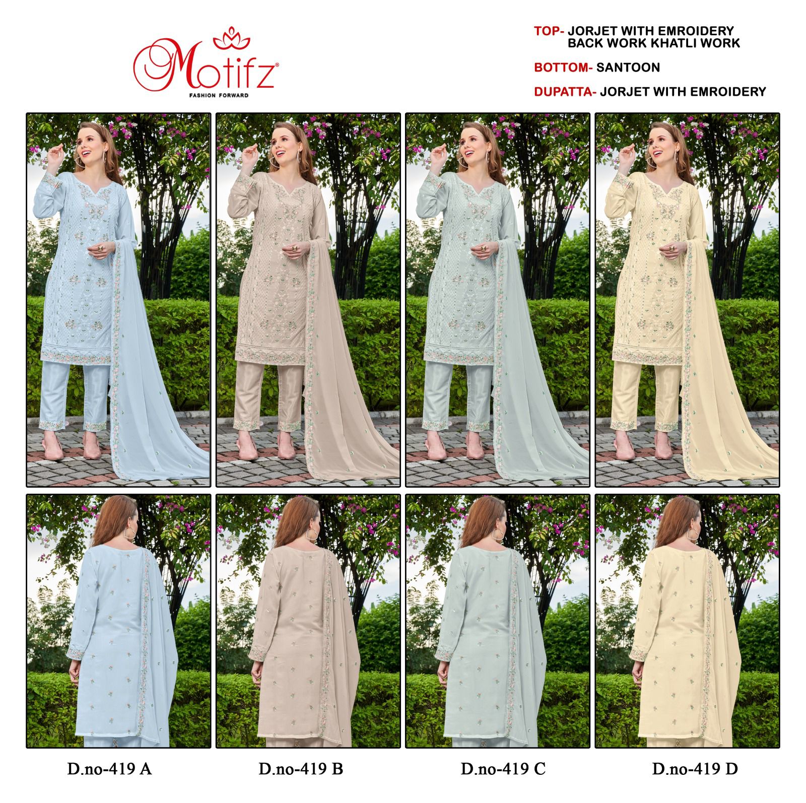 Motifz Design No 419 Abcd Georgette Pakistani Collection Manufacturer Surat