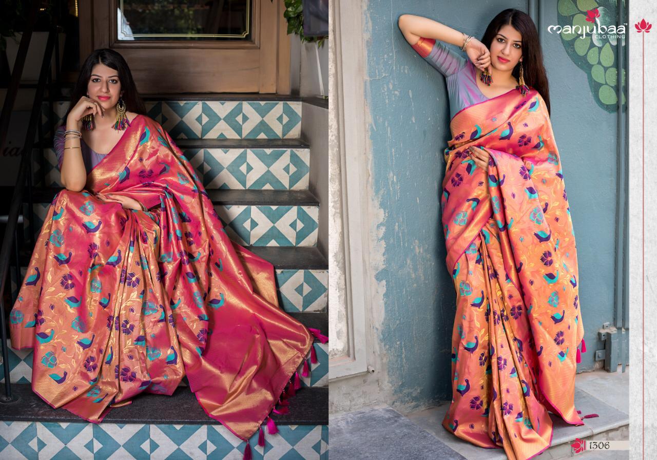 Brand - Manjuba . Type - Saree. Series -1301 to 1310. Catlog name - Mouthikala silk . Set & Loose . Single and multipal order now on whatsapp +919898838984 GST 5 Percent Extra. Delivery from-07-12-18. Book your order |