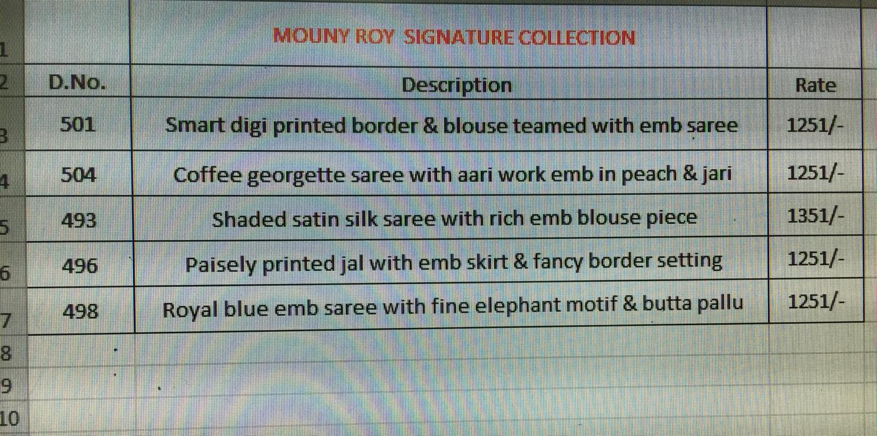 Mouny Roy Signture Collection by Alveera . Avg price 1251 Set to set . GST 5 Percent Extra. Delivery from tomorrow order and inquiry +919898838984 |