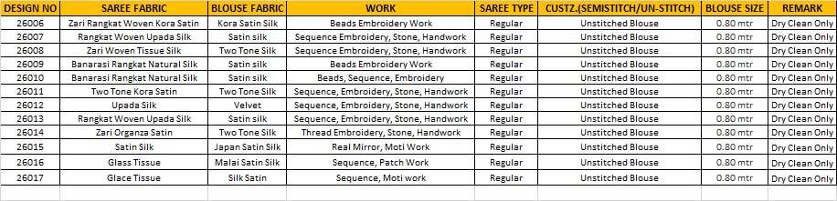 *PRICE :-* *26006-2975/-* *26007-3425/-* *26008-3285/-* *26009-3045/-* *26010-3045/-* *26011-3365/-* *26012-3535/-* *26013-3075/-* *26014-2895/-* *26015-3155/-* *26016-2935/-* *26017-3155/-* +*5% GST EXTRA*
