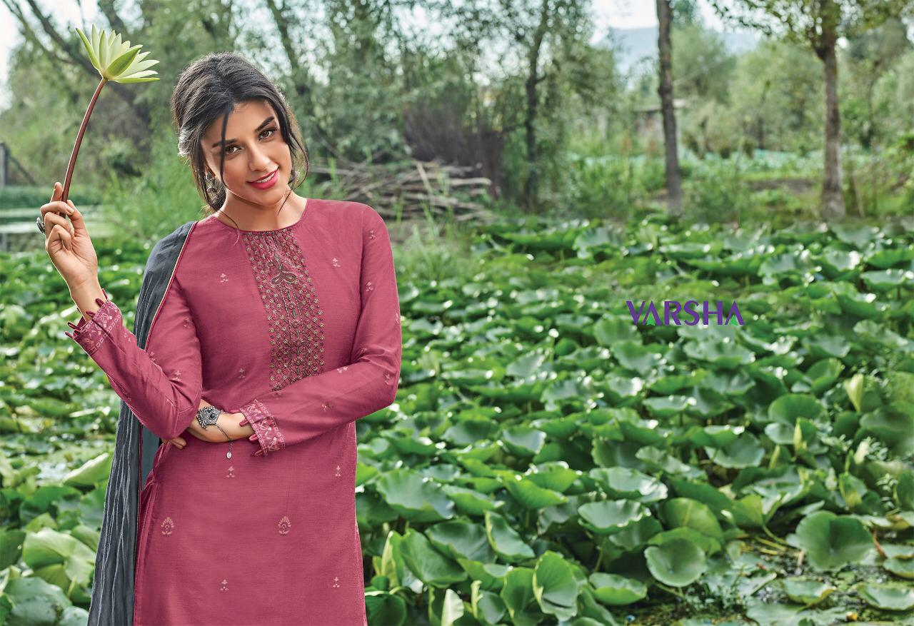 Mrinalini By Varsha Fashion 111 Series Fancy Chanderi Minakri Weave Salwar Kameez Catlog Wholesale Delaer Surat