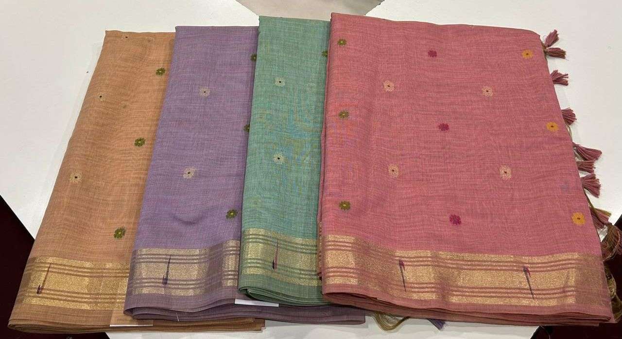 Introducing Muga Cotton P2, a premium soft Muga Cotton saree crafted for timeless elegance. This beautiful saree features a classic floral and Paithani-style woven pallu, paired with a rich zari-woven border highlighted by a very decent floral pattern. The body is adorned with all-over woven buttis, adding grace and charm, and finished with fancy tassels for a luxurious touch. Comes with a matching running blouse piece, perfect for festive and special occasions. |