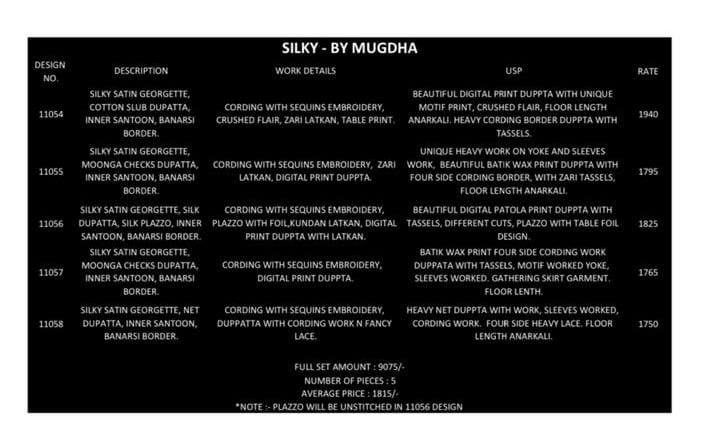 *MUGDHA* *11054 SERIES* *RATE LIST & FABRIC DESCRIPTION ATTACHED* *DISPATCH:-MONDAY* *DROP ORDER BEST* |
