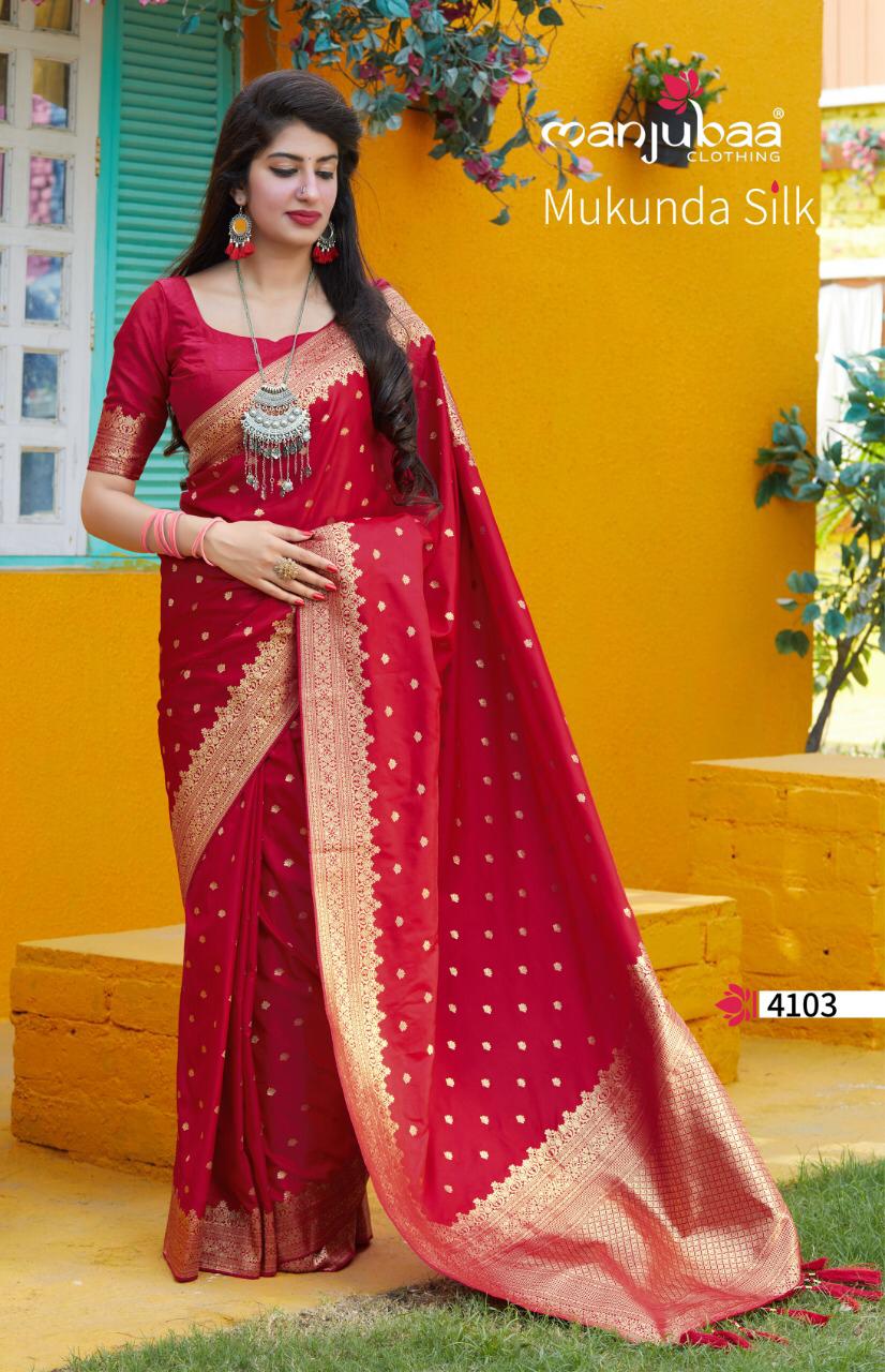 Buy Online Mukunda Silk Series 4101 To 4107 By Manjubaa Dealer And Exporter Gujrat 9 Pcs of Full Catalogue at Wholesale Price. Looking for Mukunda Silk Series 4101 To 4107 By Manjubaa Dealer And Exporter Gujrat Full Catalouge at Best Price? Buy Now Mukunda Silk Series 4101 To 4107 By Manjubaa Dealer And Exporter Gujrat at Wholesale Rate of Rs 24255 with Total 9 Pcs from authroized dealer and supplier of Manjubaa Clothing Brand. Cost of Each piece is just only Rs 2695 which is very low and affordable price to resale the product in your retail store ,This is Surat based Wholesale Supplier & Dealer of Manjubaa Clothing Brand. Click on Brand name to Know more about Manjubaa Clothing Brand's products.Call or Whatsapp on 9898838984 for booking or enquiry