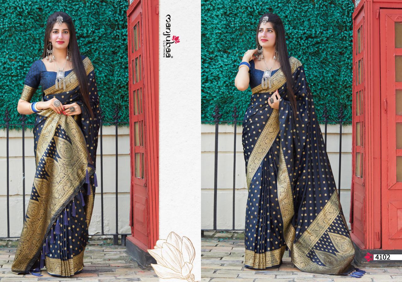 Brand - Manjubaa. Series - 4101 to 4107. *Banarsi silk satin* Weight - 750 Gram Approx per pcs . *Manjubaa* New Catalog Launching - *Mukunda silk* Series 4101 To 4107 *Rate - 2695/-* GST 5 Percent Extra. Delivery from today Single Available |