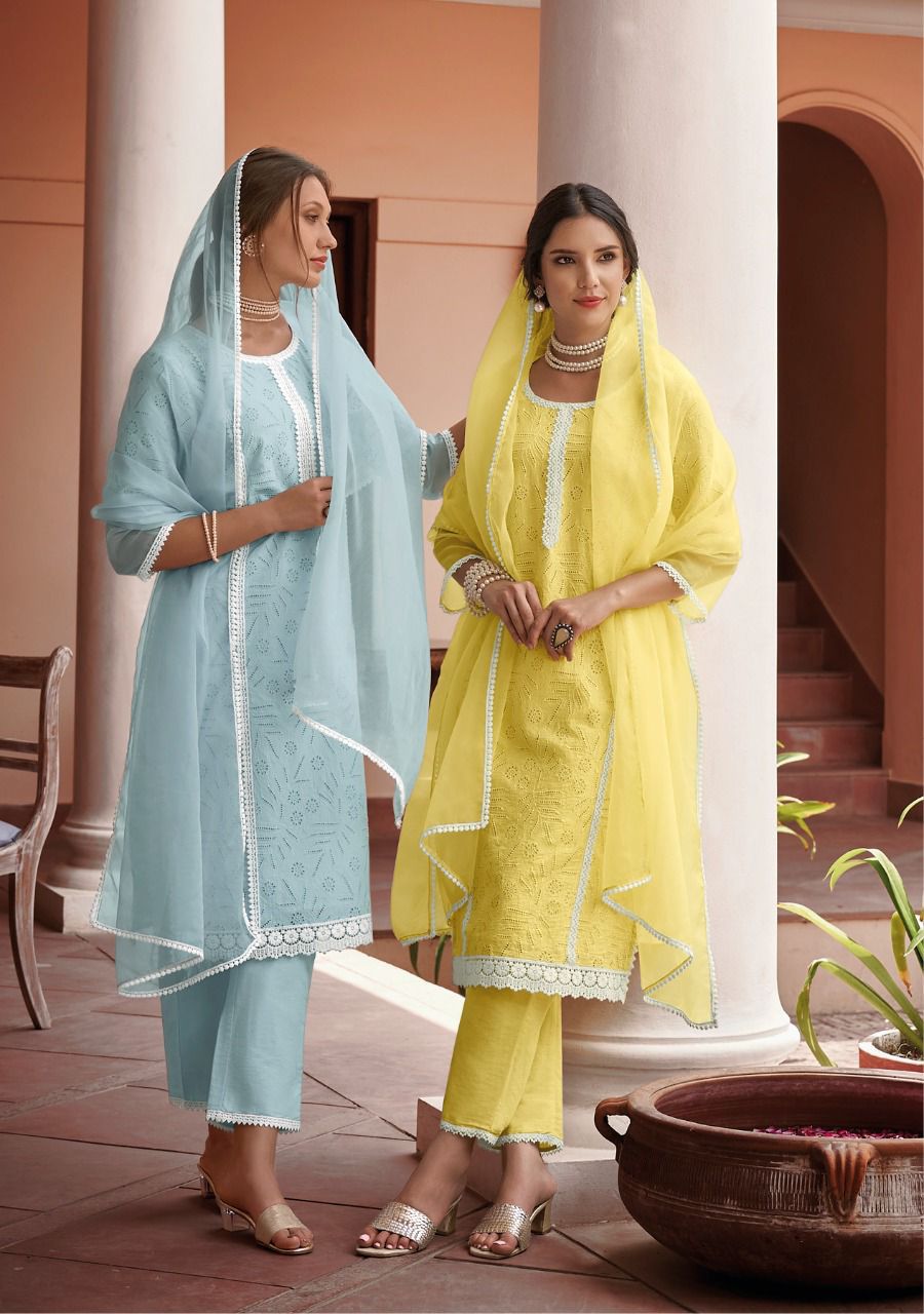Buy Online Mul Mul By Kalki Fashion Stylish Wear Top Bottom With Dupatta Wholesaler Supplier From Surat 4 Pcs of Full Catalogue at Wholesale Price. Looking for Mul Mul By Kalki Fashion Stylish Wear Top Bottom With Dupatta Wholesaler Supplier From Surat Full Catalouge at Best Price? Buy Now Mul Mul By Kalki Fashion Stylish Wear Top Bottom With Dupatta Wholesaler Supplier From Surat at Wholesale Rate of Rs 5996 with Total 4 Pcs from authroized dealer and supplier of Brand. Cost of Each piece is just only Rs 1499 which is very low and affordable price to resale the product in your retail store ,This is Surat based Wholesale Supplier & Dealer of Brand. Click on Brand name to Know more about Brand's products.Call or Whatsapp on 9898838984 for booking or enquiry