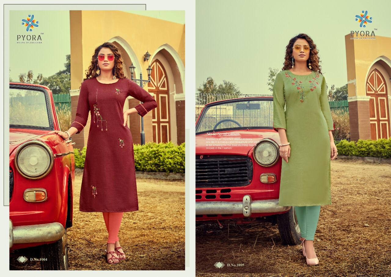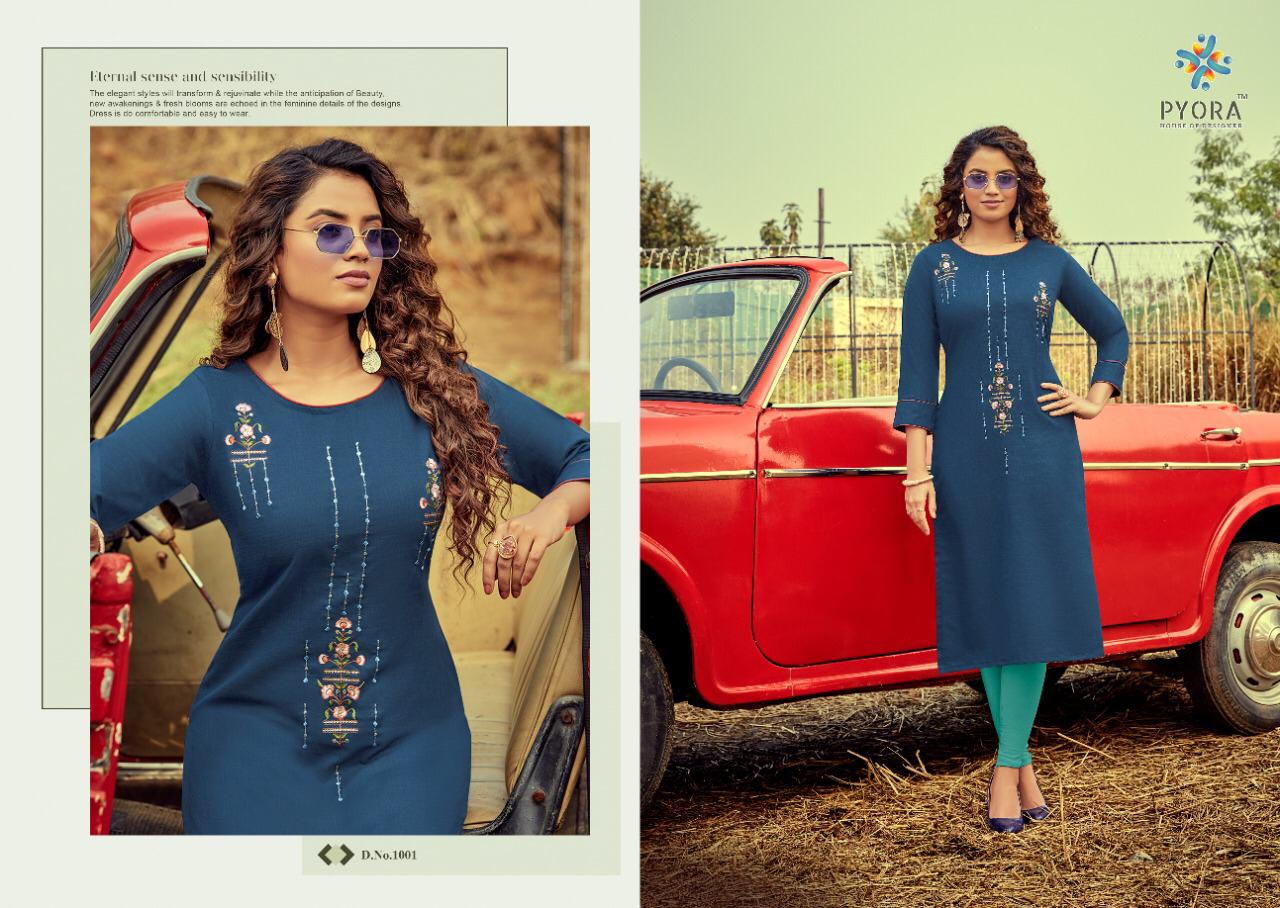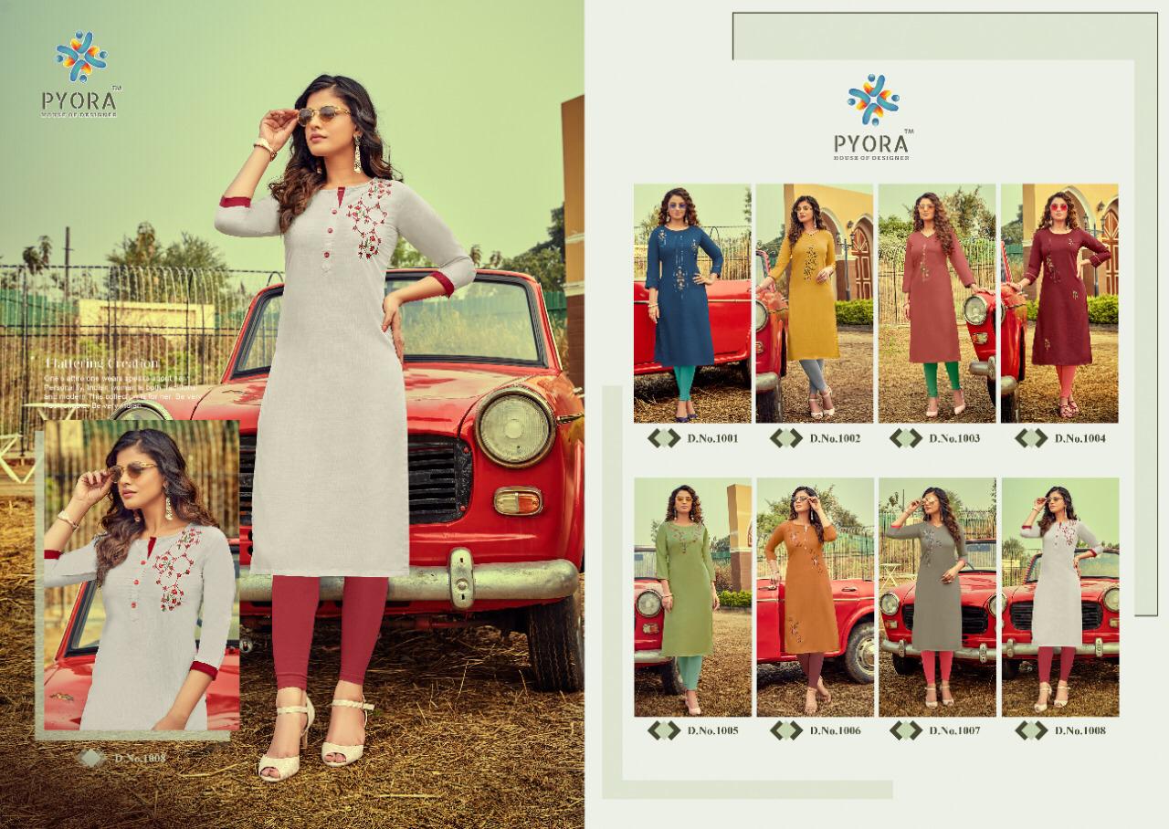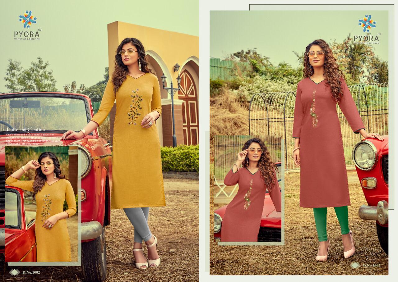 ? *PYORA launches exclusive designer kurti* ? *?PYORA?* ?Catalogue name- ?Mulberry vol 1 ?Fabric PURE Swiss slub cotton with embrodary work ?Size chart? S-(36),M-(38),L-(40),XL-(42),XXL-(44),3XL-(46) ?Length - 46+ ?Designs- 8 ?Rate:- 271 rs only *GST +5% ADD ON BILL AMT* |