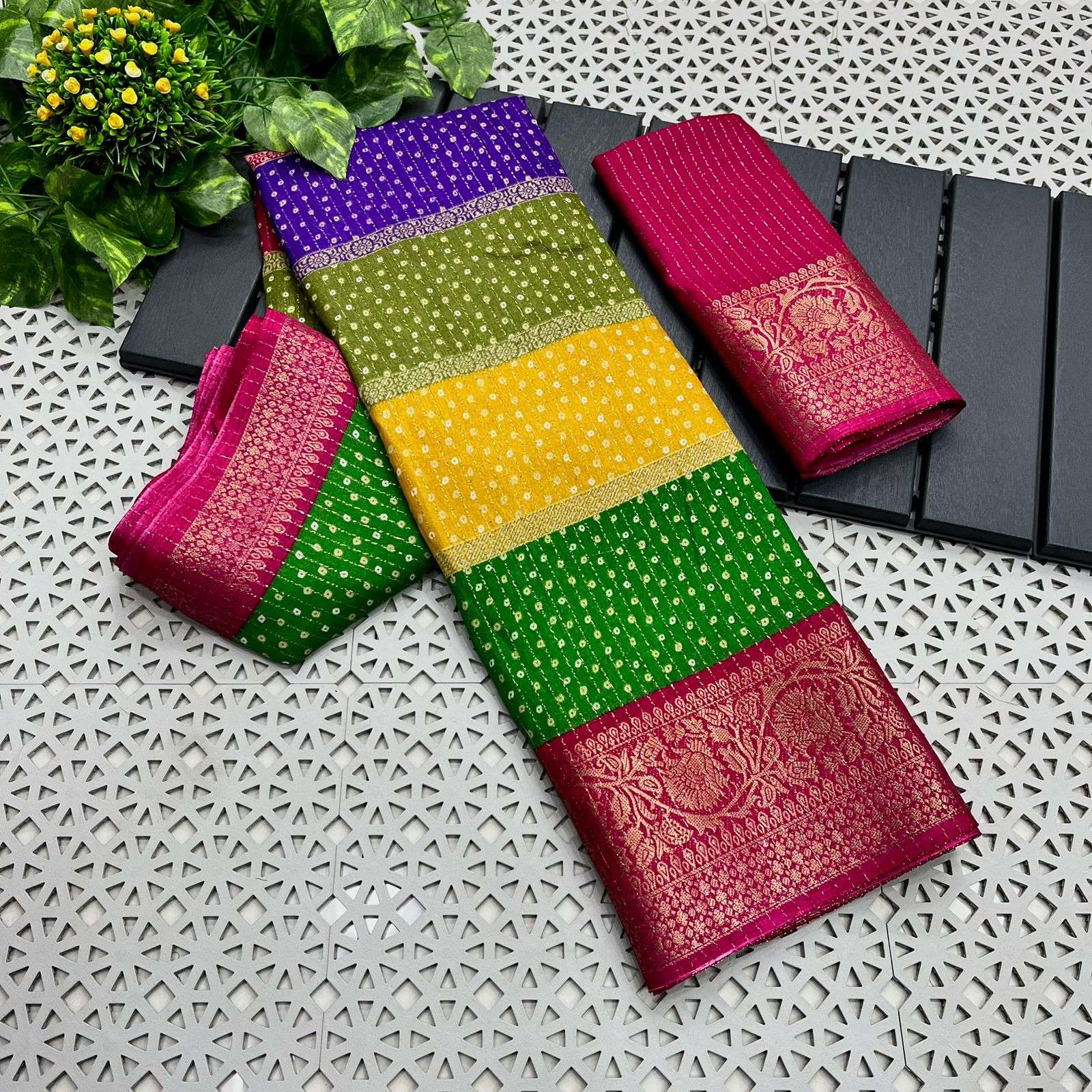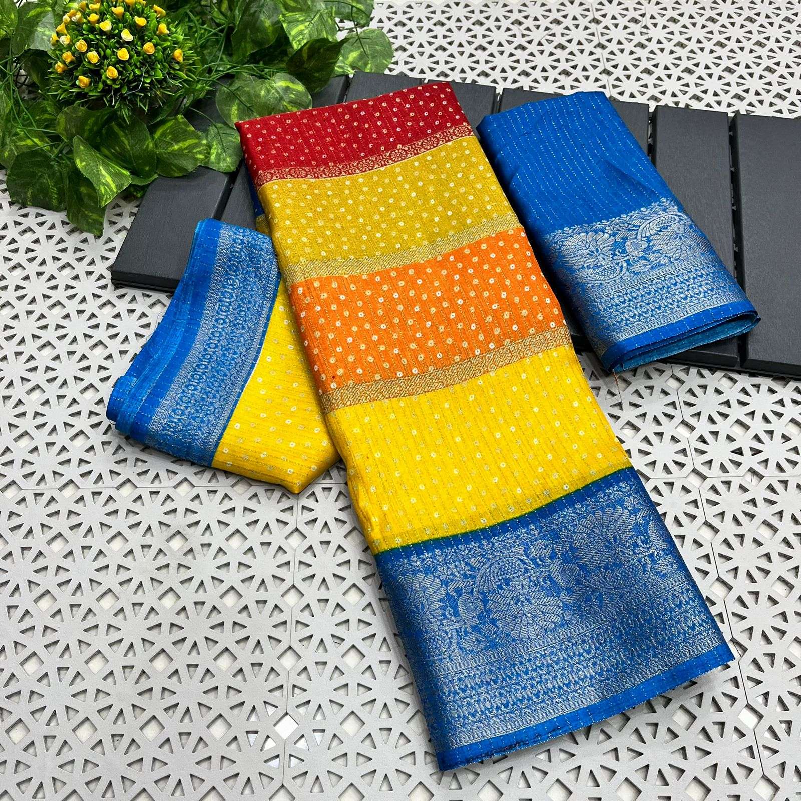 Buy Online Multicolour Bandhej Dola Silk Saree Collection 3 Pcs of Full Catalogue at Wholesale Price. Looking for Multicolour Bandhej Dola Silk Saree Collection Full Catalouge at Best Price? Buy Now Multicolour Bandhej Dola Silk Saree Collection at Wholesale Rate of Rs 1350 with Total 3 Pcs from authroized dealer and supplier of NITYA NX Brand. Cost of Each piece is just only Rs 450 which is very low and affordable price to resale the product in your retail store ,This is Surat based Wholesale Supplier & Dealer of NITYA NX Brand. Click on Brand name to Know more about NITYA NX Brand's products.Call or Whatsapp on 9898838984 for booking or enquiry
