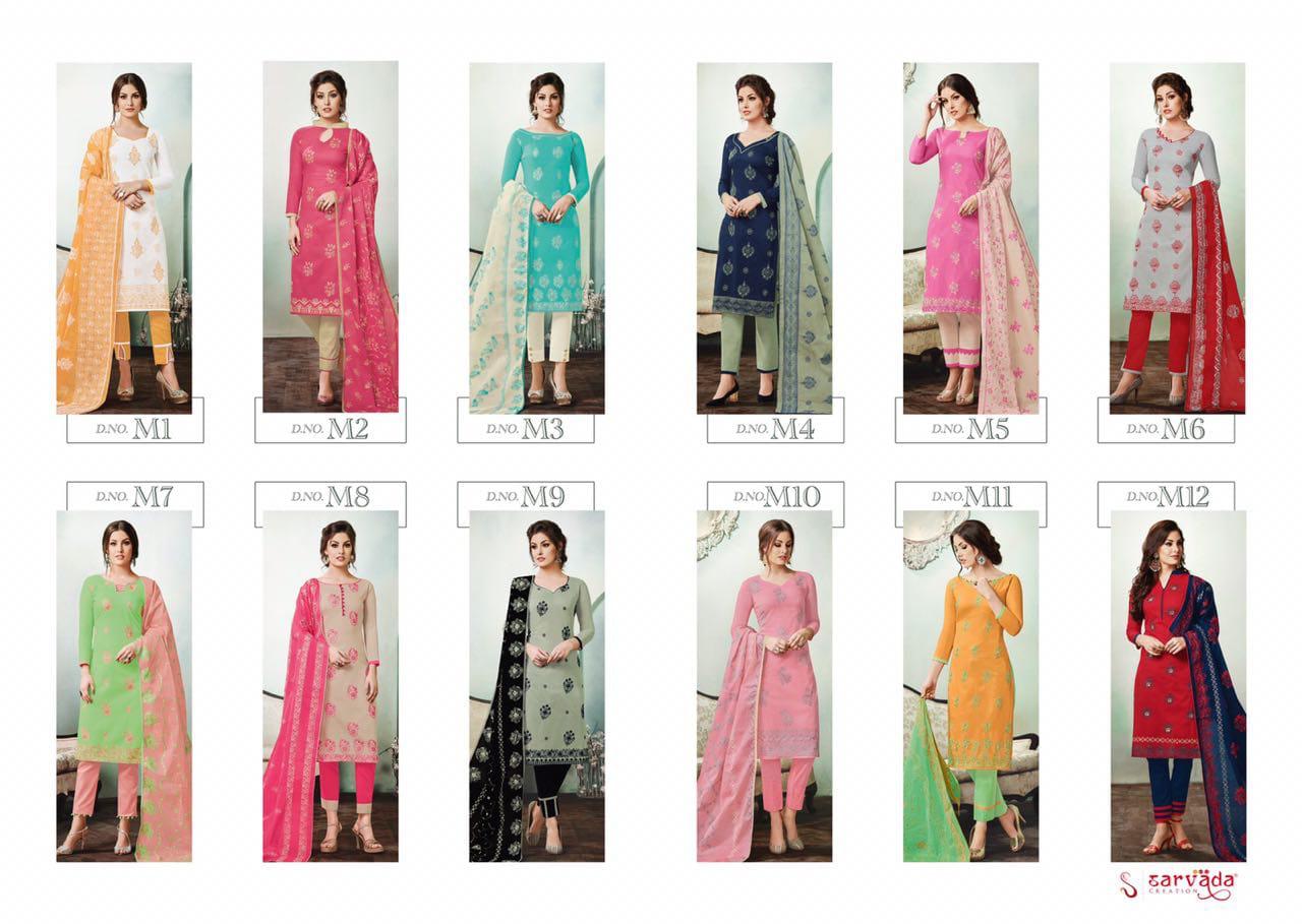 Buy Online Mum Mul By Sarvada M1 Series Fancy Cambric Lone Cotton Salwar Kameez Catlog Wholesale Dealer Surat 12 Pcs of Full Catalogue at Wholesale Price. Looking for Mum Mul By Sarvada M1 Series Fancy Cambric Lone Cotton Salwar Kameez Catlog Wholesale Dealer Surat Full Catalouge at Best Price? Buy Now Mum Mul By Sarvada M1 Series Fancy Cambric Lone Cotton Salwar Kameez Catlog Wholesale Dealer Surat at Wholesale Rate of Rs 8940 with Total 12 Pcs from authroized dealer and supplier of SARVADA CREATION Brand. Cost of Each piece is just only Rs 745 which is very low and affordable price to resale the product in your retail store ,This is Surat based Wholesale Supplier & Dealer of SARVADA CREATION Brand. Click on Brand name to Know more about SARVADA CREATION Brand's products.Call or Whatsapp on 9898838984 for booking or enquiry