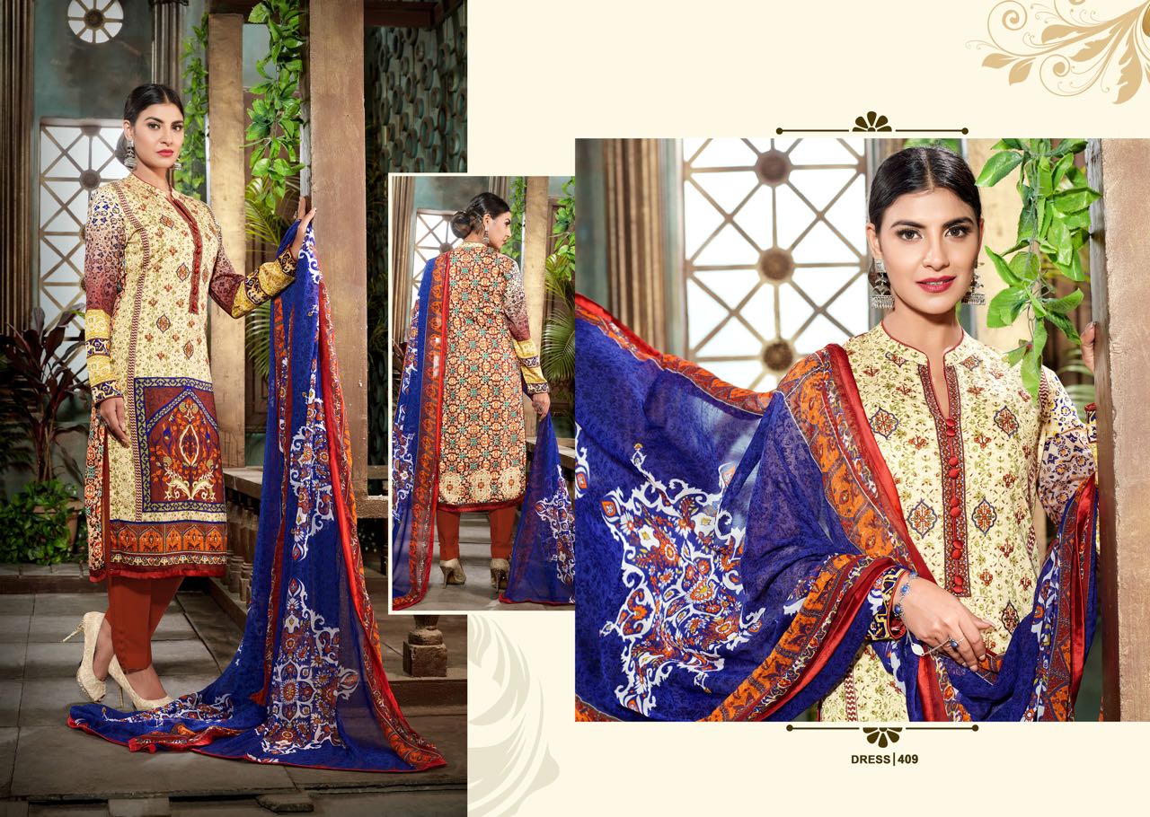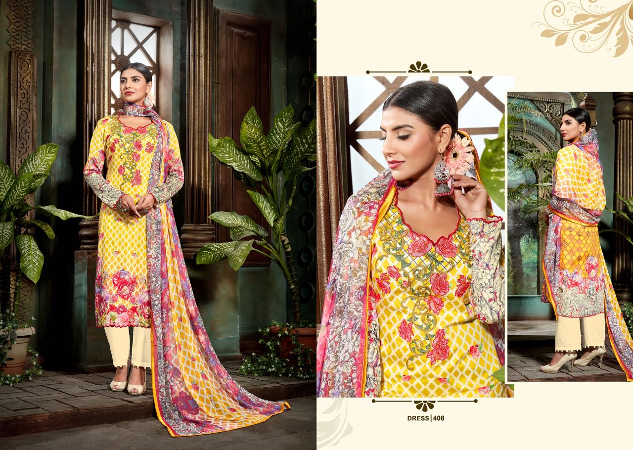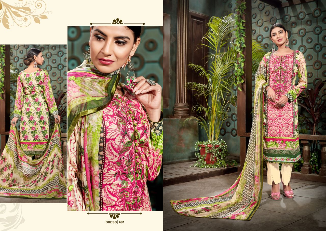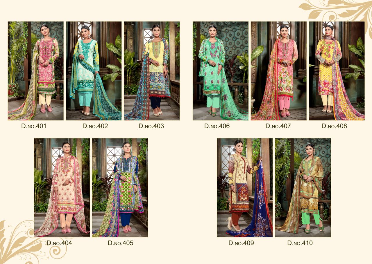 Buy Online Mumtaz Arts Gulmohar 401 Se Jam Silk Karachi Suit Collection 10 Pcs of Full Catalogue at Wholesale Price. Looking for Mumtaz Arts Gulmohar 401 Se Jam Silk Karachi Suit Collection Full Catalouge at Best Price? Buy Now Mumtaz Arts Gulmohar 401 Se Jam Silk Karachi Suit Collection at Wholesale Rate of Rs 6750 with Total 10 Pcs from authroized dealer and supplier of MUMTAZ ARTS Brand. Cost of Each piece is just only Rs 675 which is very low and affordable price to resale the product in your retail store ,This is Surat based Wholesale Supplier & Dealer of MUMTAZ ARTS Brand. Click on Brand name to Know more about MUMTAZ ARTS Brand's products.Call or Whatsapp on 9898838984 for booking or enquiry