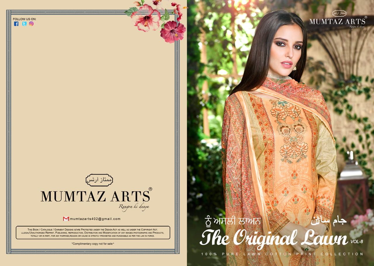 Thank you for your support Today we *MUMTAZ ARTS®* *RANGON KI DUNYA* are launching our new exclusive series with exclusive lawn cotton *digital print Top* with Exclusive *lawn mal-mal dupatta* _*MUMTAZ ARTS�*_ _*RANGON KI DUNYA*_ Name - *The Original lawn vol.8* Fabric details - Top - Lawn Cotton *Digital* Bot - Pure cotton (2.80 mtr app) Dup -Exclusive Lawn mal-mal dupatta Designs - 10 pcs Selling Rate - *550/- +GST* *POUCH PACKING* *LEATHER BAG ? PACKING* order and inquiry +919898838984 |