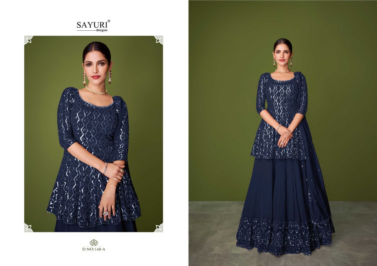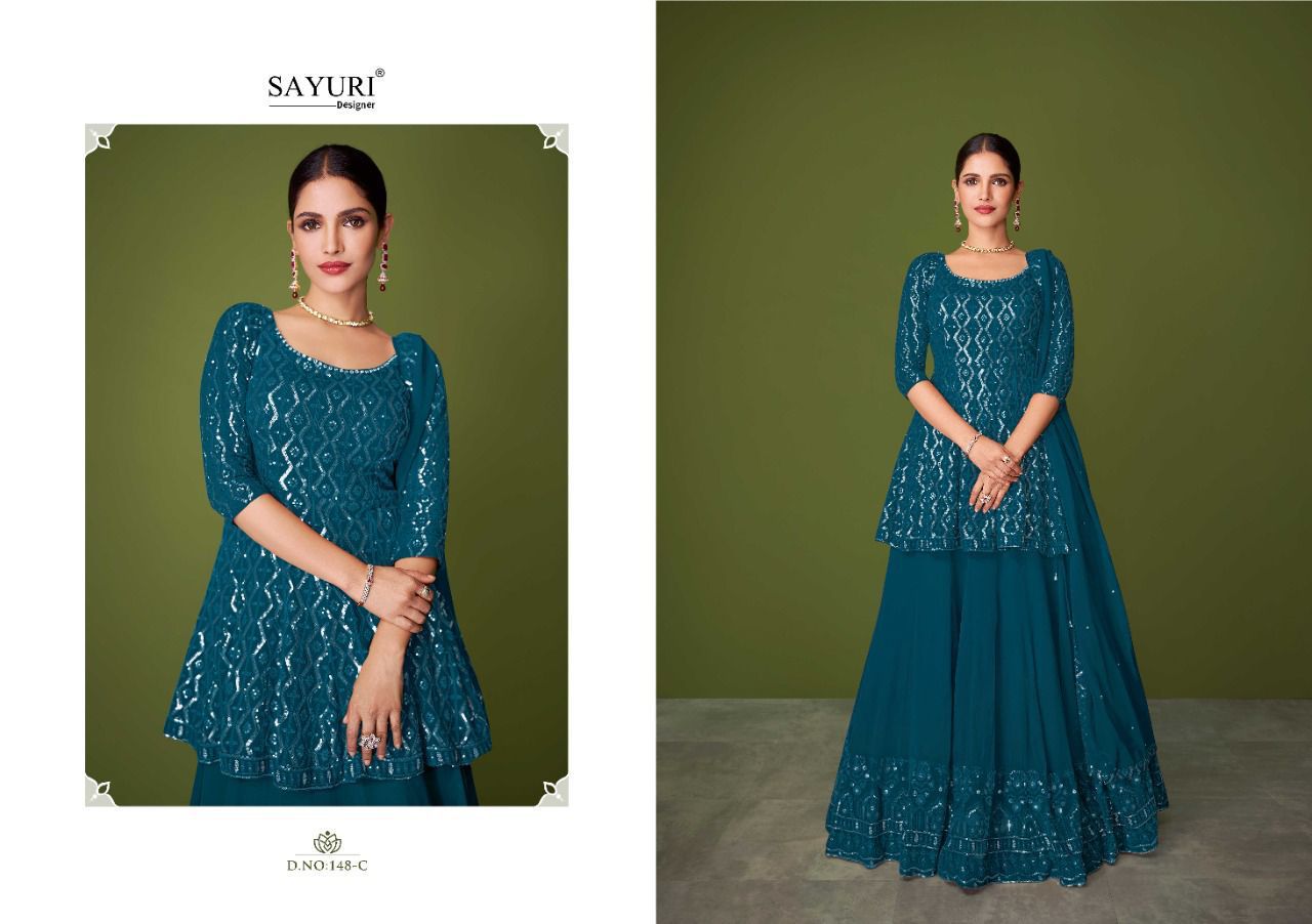 Buy Online Murad By Sayuri Designer Georgette Suit 4 Pcs of Full Catalogue at Wholesale Price. Looking for Murad By Sayuri Designer Georgette Suit Full Catalouge at Best Price? Buy Now Murad By Sayuri Designer Georgette Suit at Wholesale Rate of Rs 9596 with Total 4 Pcs from authroized dealer and supplier of Brand. Cost of Each piece is just only Rs 2399 which is very low and affordable price to resale the product in your retail store ,This is Surat based Wholesale Supplier & Dealer of Brand. Click on Brand name to Know more about Brand's products.Call or Whatsapp on 9898838984 for booking or enquiry