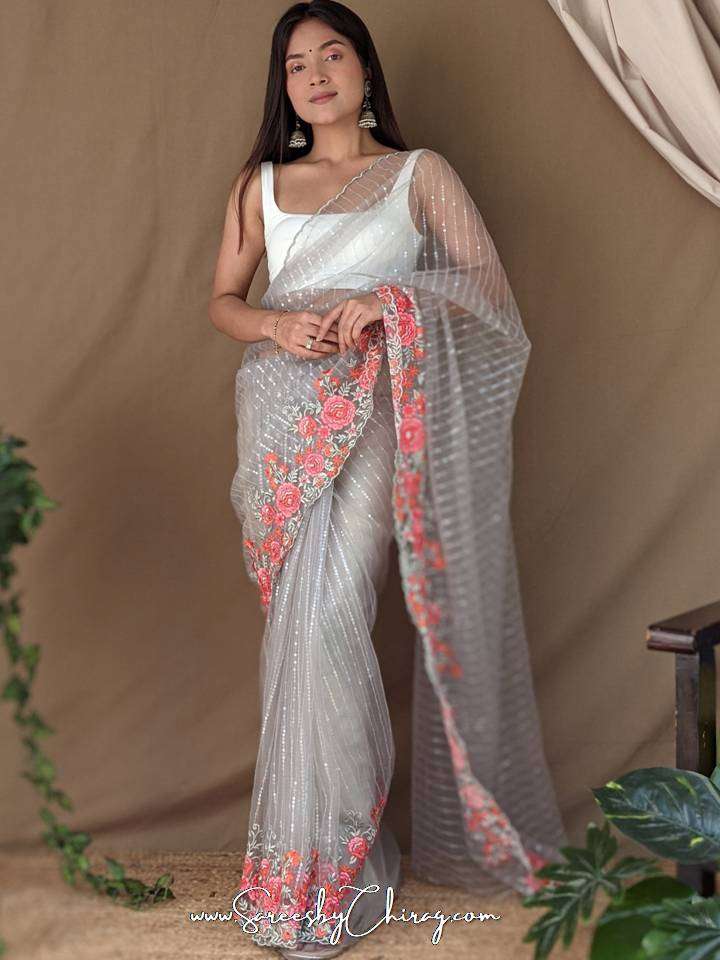 Catalog Name : *MURARI* No of Pcs : 7 Fabric : Super Net Work : All over beautiful sequencing lining of 5mm and with multi work flowers in pannel With Banglori sattin Silk work Blouse