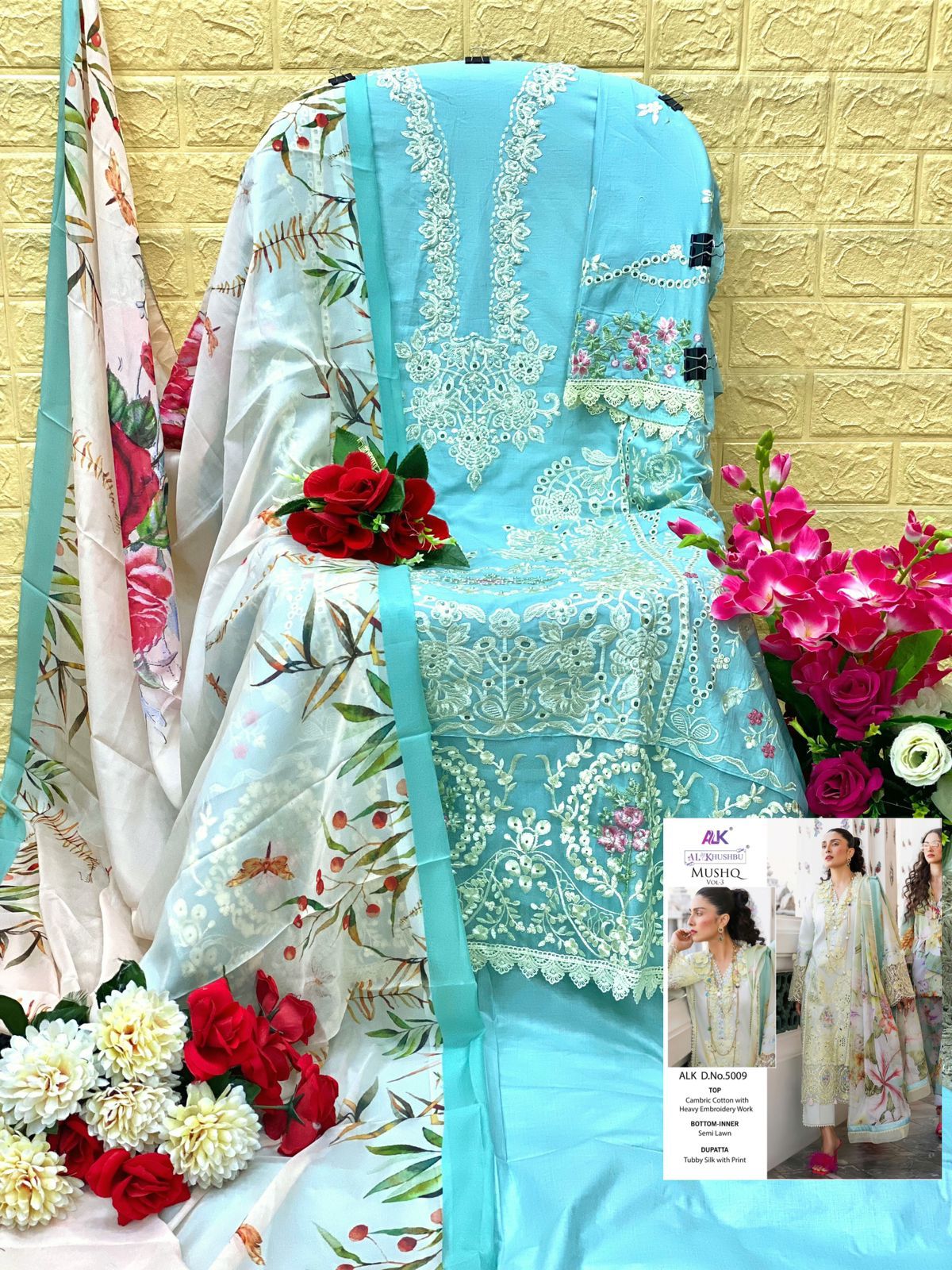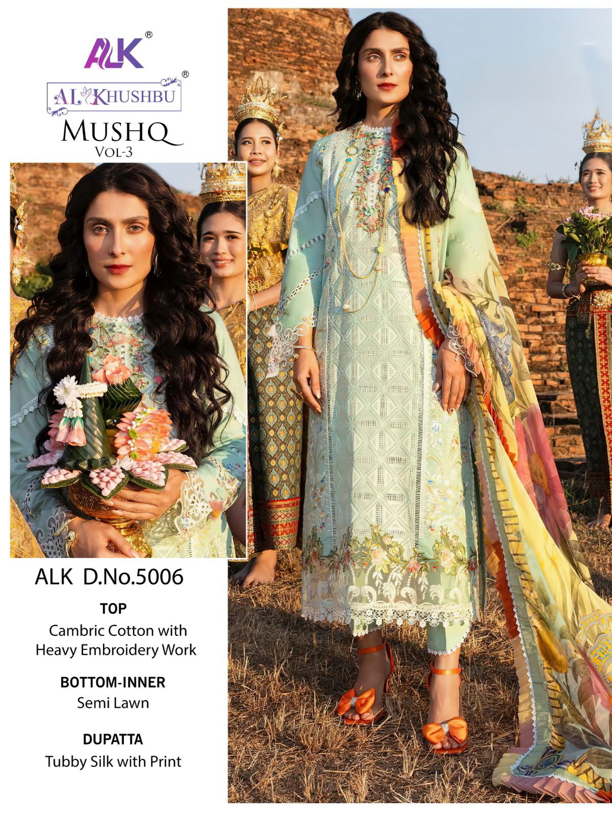 Buy Online Mushq Vol 3 Al Khushbu Cotton Suits Manufacturing Surat 5 Pcs of Full Catalogue at Wholesale Price. Looking for Mushq Vol 3 Al Khushbu Cotton Suits Manufacturing Surat Full Catalouge at Best Price? Buy Now Mushq Vol 3 Al Khushbu Cotton Suits Manufacturing Surat at Wholesale Rate of Rs 5995 with Total 5 Pcs from authroized dealer and supplier of Brand. Cost of Each piece is just only Rs 1199 which is very low and affordable price to resale the product in your retail store ,This is Surat based Wholesale Supplier & Dealer of Brand. Click on Brand name to Know more about Brand's products.Call or Whatsapp on 9898838984 for booking or enquiry