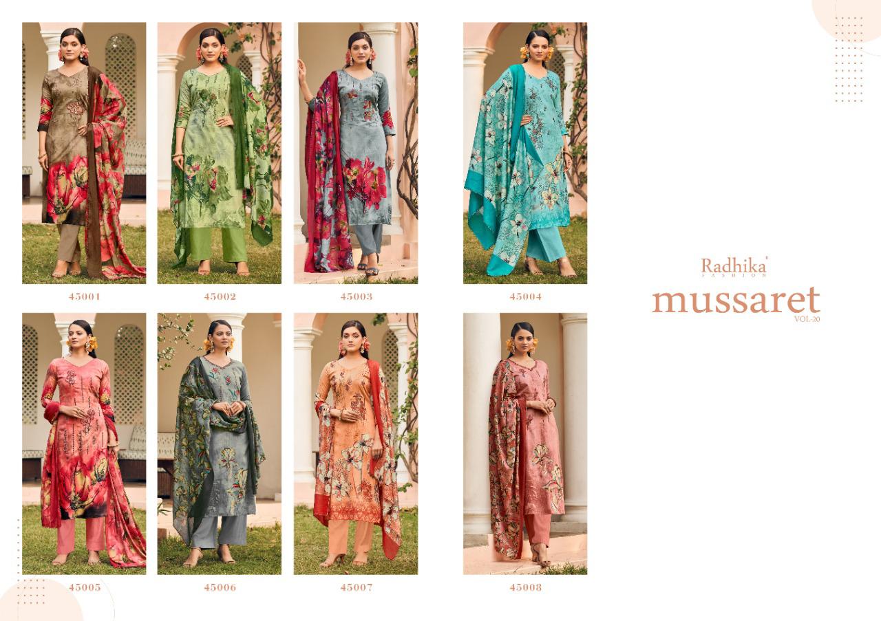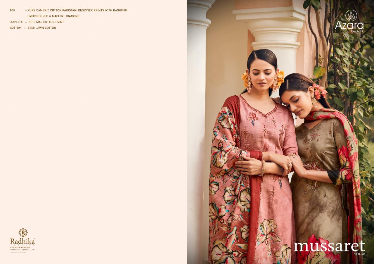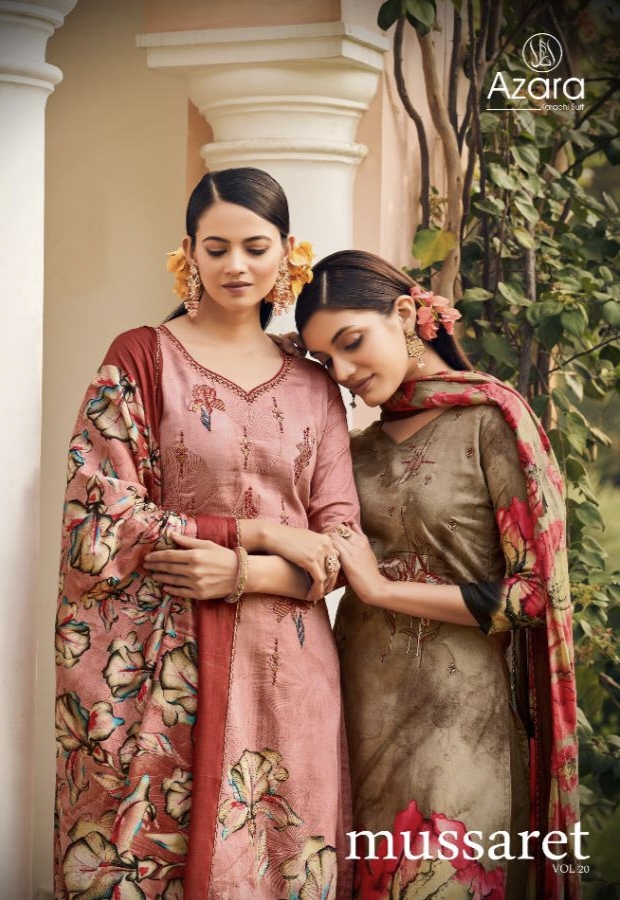 Buy Online Mussaret Vol 20 By Azara Cotton Satin Designer Print Suits 8 Pcs of Full Catalogue at Wholesale Price. Looking for Mussaret Vol 20 By Azara Cotton Satin Designer Print Suits Full Catalouge at Best Price? Buy Now Mussaret Vol 20 By Azara Cotton Satin Designer Print Suits at Wholesale Rate of Rs 5200 with Total 8 Pcs from authroized dealer and supplier of Brand. Cost of Each piece is just only Rs 650 which is very low and affordable price to resale the product in your retail store ,This is Surat based Wholesale Supplier & Dealer of Brand. Click on Brand name to Know more about Brand's products.Call or Whatsapp on 9898838984 for booking or enquiry