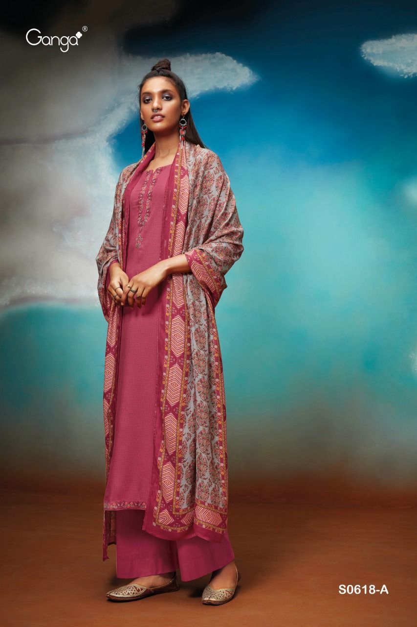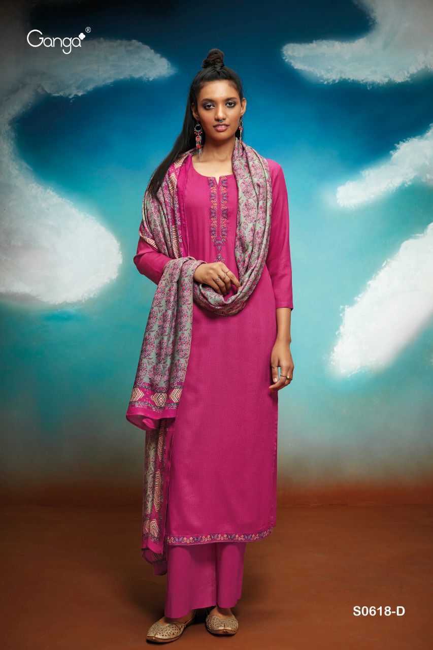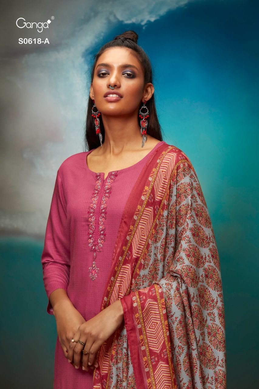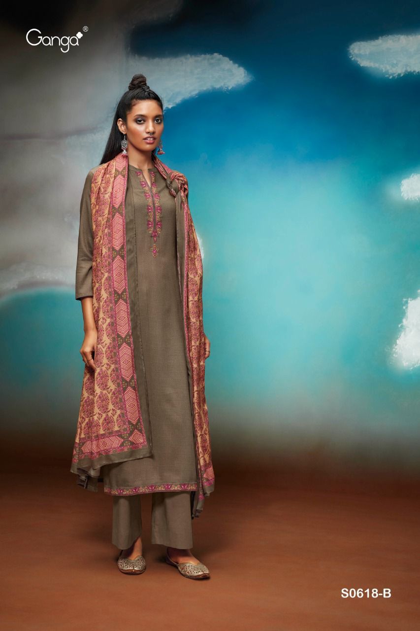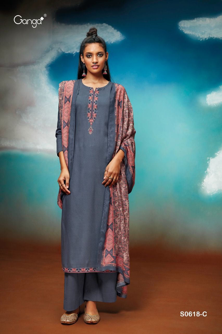 *GANGA* MYNA 618 WOOL DOBBY PRINTED WITH EMRBOIDERY |