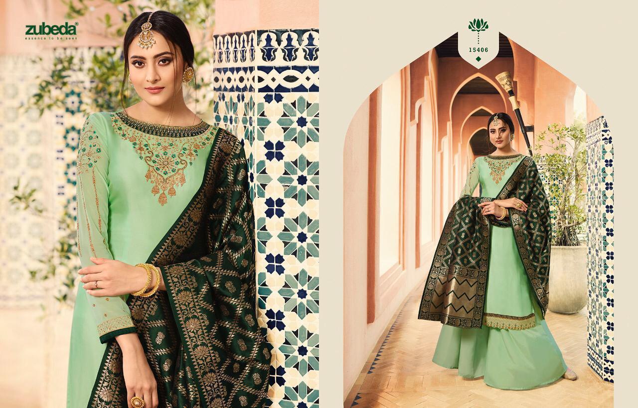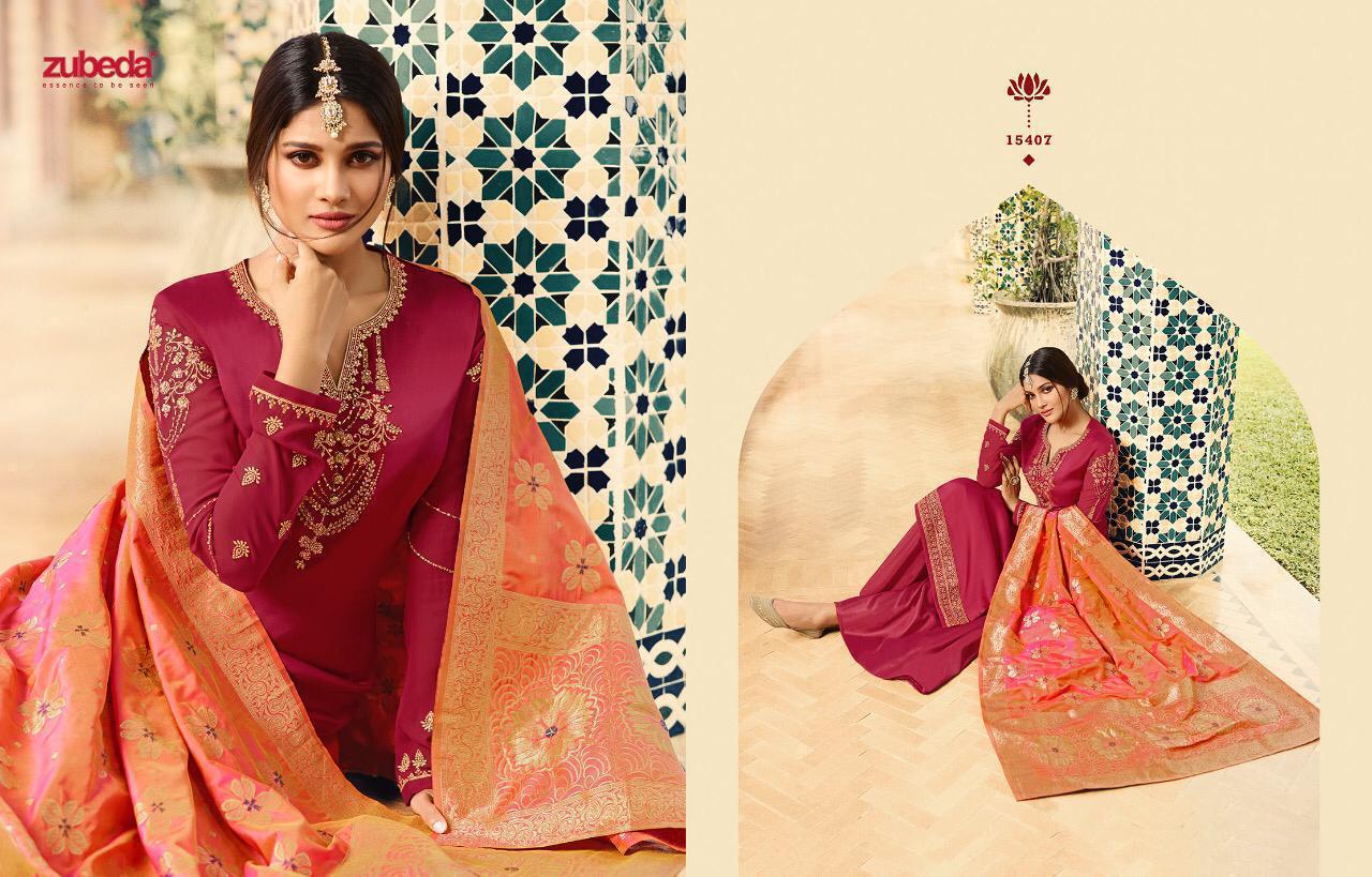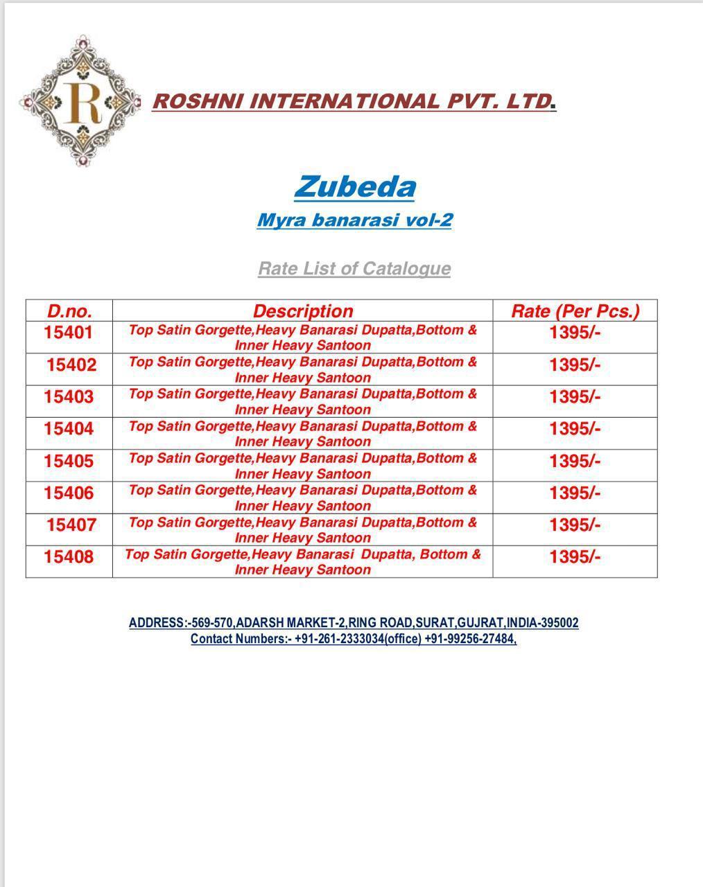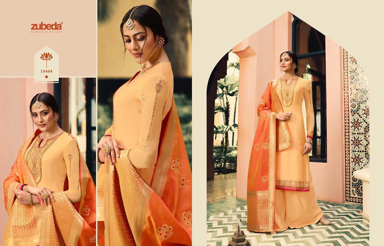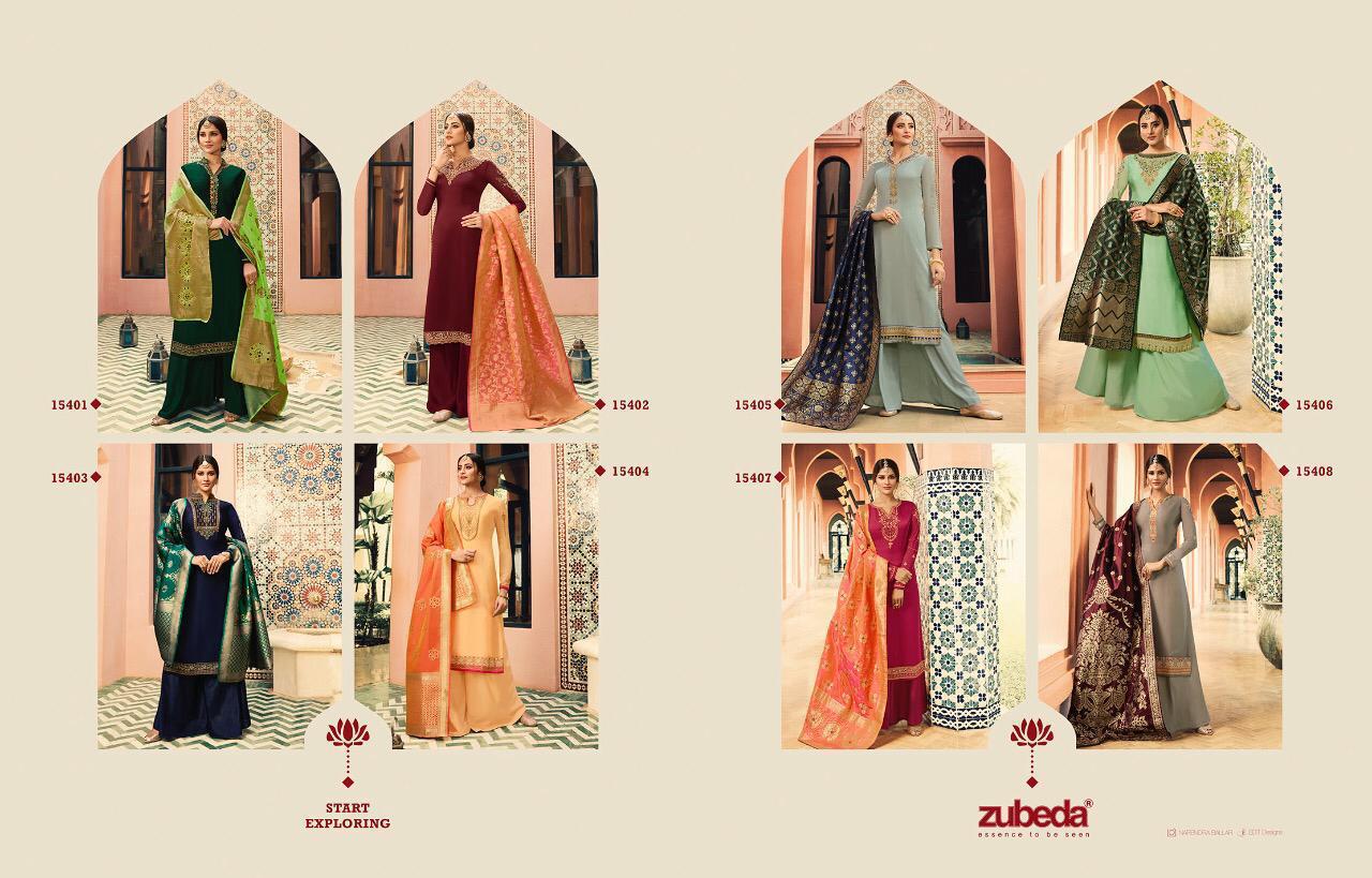 Buy Online Myra Banarasi Vol 2 By Zubeda 15401 Series Fancy Satin Georgette Salwar Kameez With Banarsi Dupatta Wholesale Dealer Surat 8 Pcs of Full Catalogue at Wholesale Price. Looking for Myra Banarasi Vol 2 By Zubeda 15401 Series Fancy Satin Georgette Salwar Kameez With Banarsi Dupatta Wholesale Dealer Surat Full Catalouge at Best Price? Buy Now Myra Banarasi Vol 2 By Zubeda 15401 Series Fancy Satin Georgette Salwar Kameez With Banarsi Dupatta Wholesale Dealer Surat at Wholesale Rate of Rs 11160 with Total 8 Pcs from authroized dealer and supplier of ZUBEDA Brand. Cost of Each piece is just only Rs 1395 which is very low and affordable price to resale the product in your retail store ,This is Surat based Wholesale Supplier & Dealer of ZUBEDA Brand. Click on Brand name to Know more about ZUBEDA Brand's products.Call or Whatsapp on 9898838984 for booking or enquiry