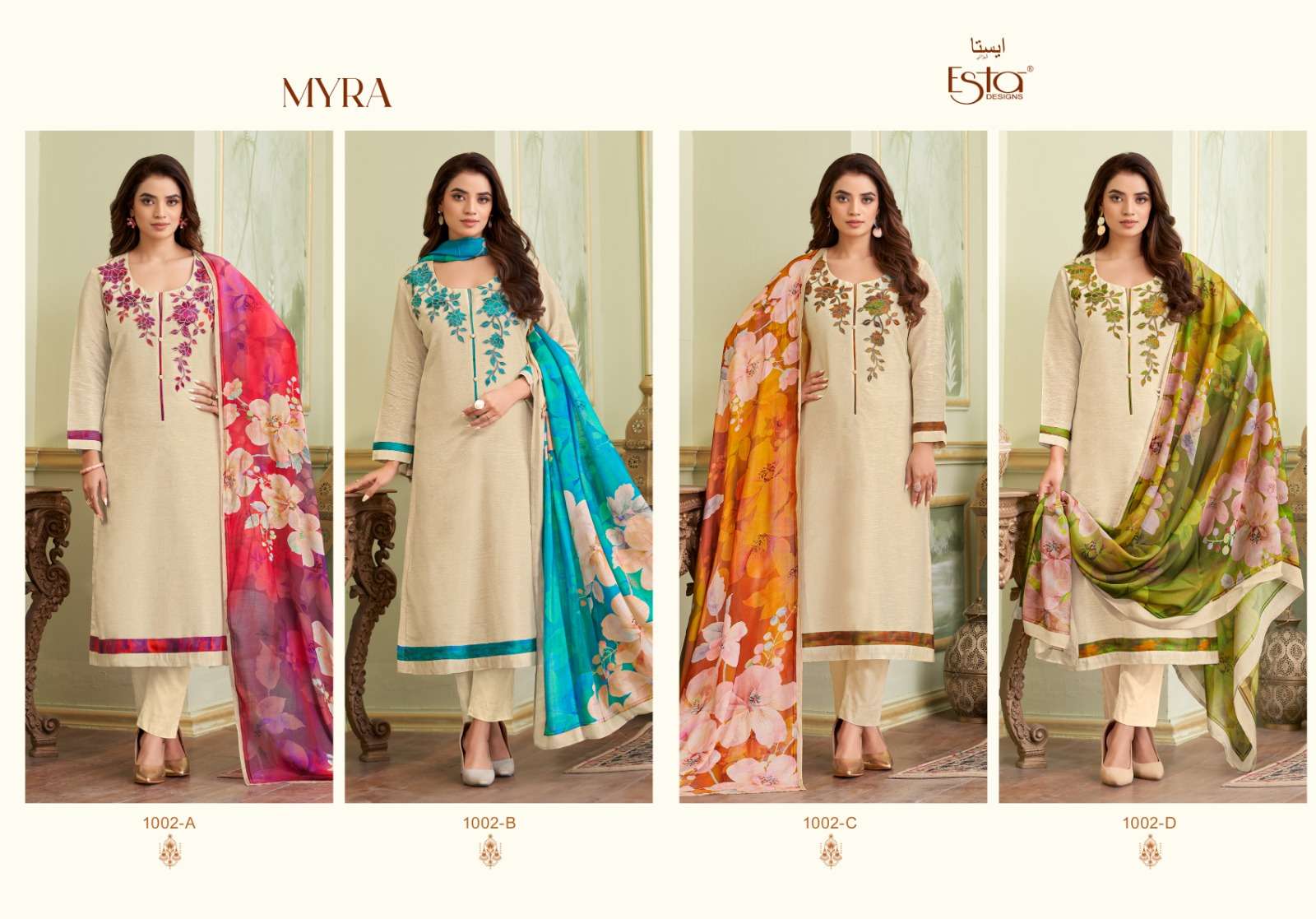 MYRA by ESTA Linen TISSUE suit collection manufacturer surat