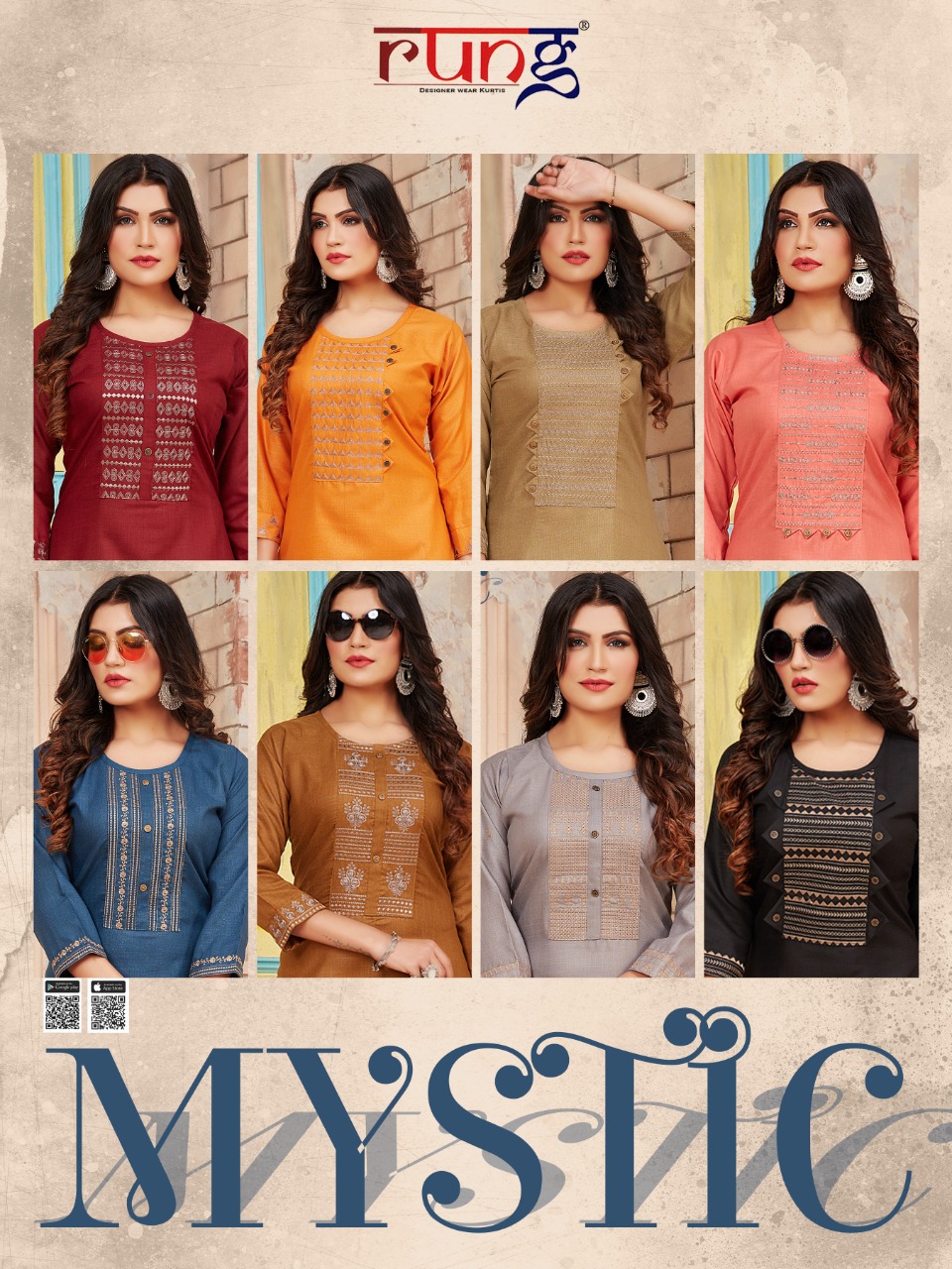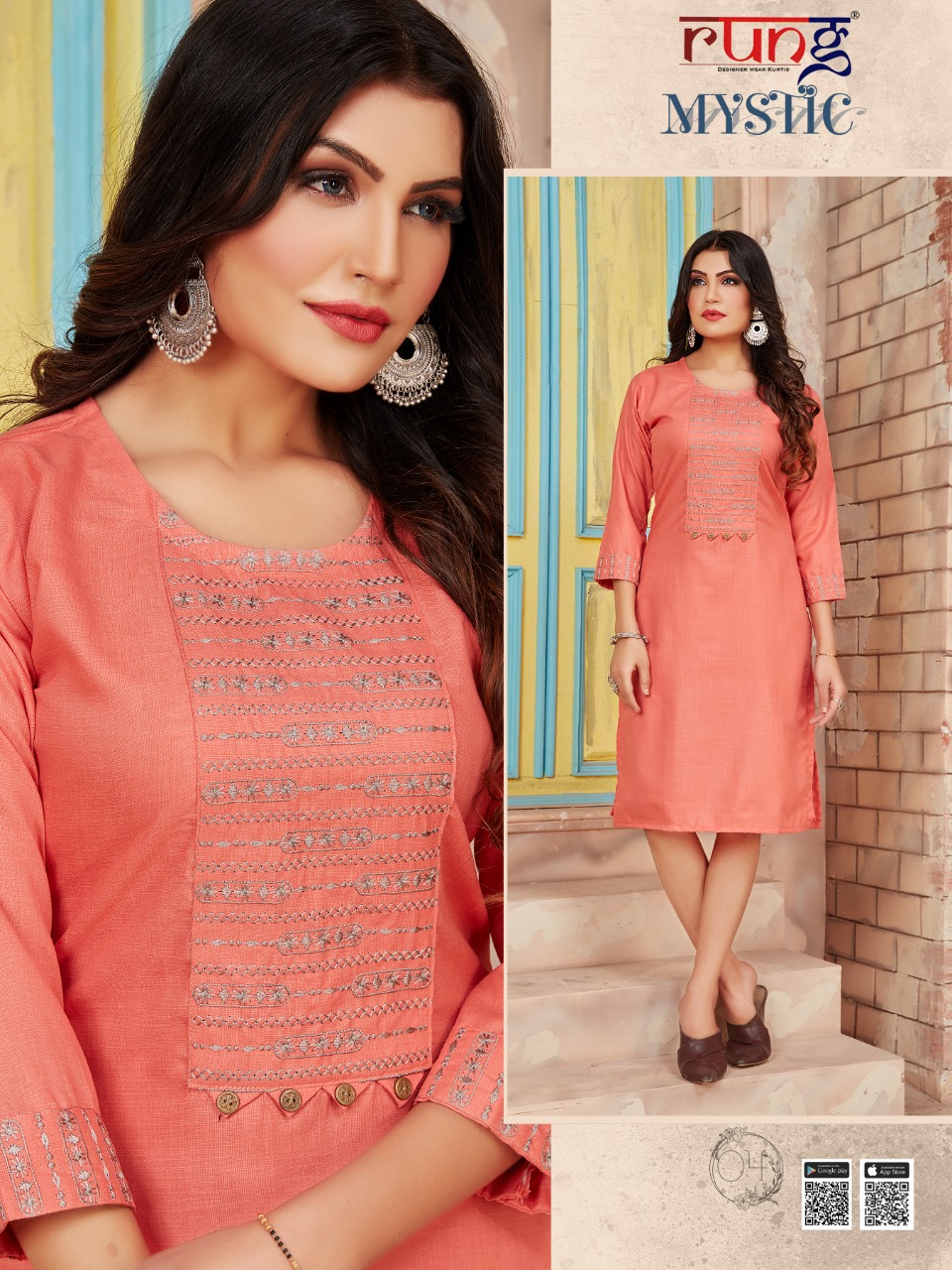 Buy Online Mystic By Rung Manufacturer Traders Surat 8 Pcs of Full Catalogue at Wholesale Price. Looking for Mystic By Rung Manufacturer Traders Surat Full Catalouge at Best Price? Buy Now Mystic By Rung Manufacturer Traders Surat at Wholesale Rate of Rs 2360 with Total 8 Pcs from authroized dealer and supplier of RUNG Brand. Cost of Each piece is just only Rs 295 which is very low and affordable price to resale the product in your retail store ,This is Surat based Wholesale Supplier & Dealer of RUNG Brand. Click on Brand name to Know more about RUNG Brand's products.Call or Whatsapp on 9898838984 for booking or enquiry