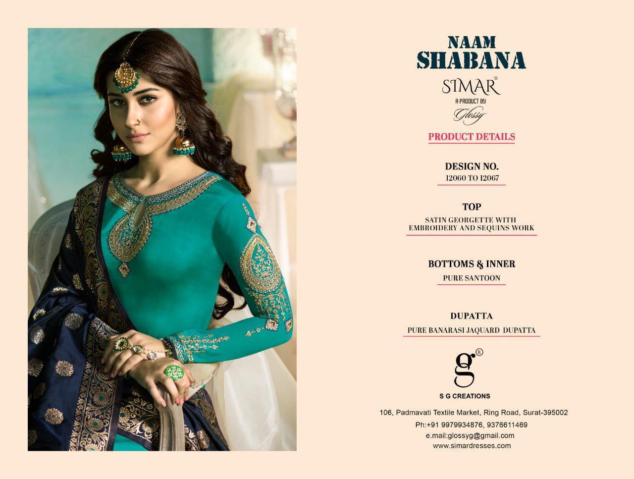 Buy Online Naam Shabana By Glossy 12060 Series Fancy Designer Party Wear Salwar Kameez Catlog Wholesaler Surat 8 Pcs of Full Catalogue at Wholesale Price. Looking for Naam Shabana By Glossy 12060 Series Fancy Designer Party Wear Salwar Kameez Catlog Wholesaler Surat Full Catalouge at Best Price? Buy Now Naam Shabana By Glossy 12060 Series Fancy Designer Party Wear Salwar Kameez Catlog Wholesaler Surat at Wholesale Rate of Rs 11400 with Total 8 Pcs from authroized dealer and supplier of GLOSSY Brand. Cost of Each piece is just only Rs 1425 which is very low and affordable price to resale the product in your retail store ,This is Surat based Wholesale Supplier & Dealer of GLOSSY Brand. Click on Brand name to Know more about GLOSSY Brand's products.Call or Whatsapp on 9898838984 for booking or enquiry