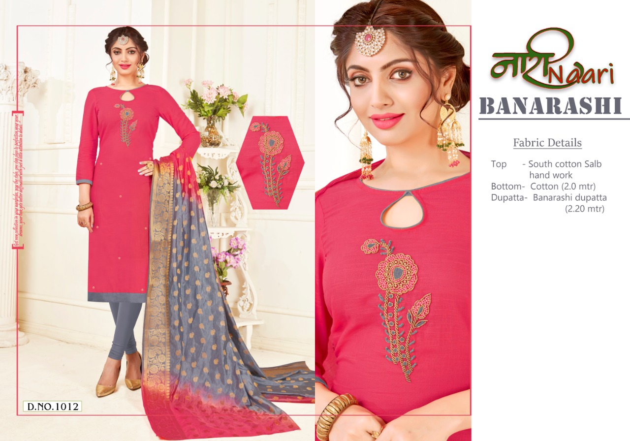 Buy Online Naari Banarasi South Cotton Dress Materials Wholesale Supplier Surat 12 Pcs of Full Catalogue at Wholesale Price. Looking for Naari Banarasi South Cotton Dress Materials Wholesale Supplier Surat Full Catalouge at Best Price? Buy Now Naari Banarasi South Cotton Dress Materials Wholesale Supplier Surat at Wholesale Rate of Rs 7140 with Total 12 Pcs from authroized dealer and supplier of Brand. Cost of Each piece is just only Rs 595 which is very low and affordable price to resale the product in your retail store ,This is Surat based Wholesale Supplier & Dealer of Brand. Click on Brand name to Know more about Brand's products.Call or Whatsapp on 9898838984 for booking or enquiry