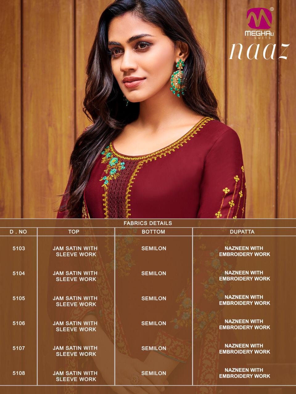 Buy Online Naaz By Megha Designer Dress Materials Wholesale Supplier And Dealer Surat 6 Pcs of Full Catalogue at Wholesale Price. Looking for Naaz By Megha Designer Dress Materials Wholesale Supplier And Dealer Surat Full Catalouge at Best Price? Buy Now Naaz By Megha Designer Dress Materials Wholesale Supplier And Dealer Surat at Wholesale Rate of Rs 4950 with Total 6 Pcs from authroized dealer and supplier of Brand. Cost of Each piece is just only Rs 825 which is very low and affordable price to resale the product in your retail store ,This is Surat based Wholesale Supplier & Dealer of Brand. Click on Brand name to Know more about Brand's products.Call or Whatsapp on 9898838984 for booking or enquiry