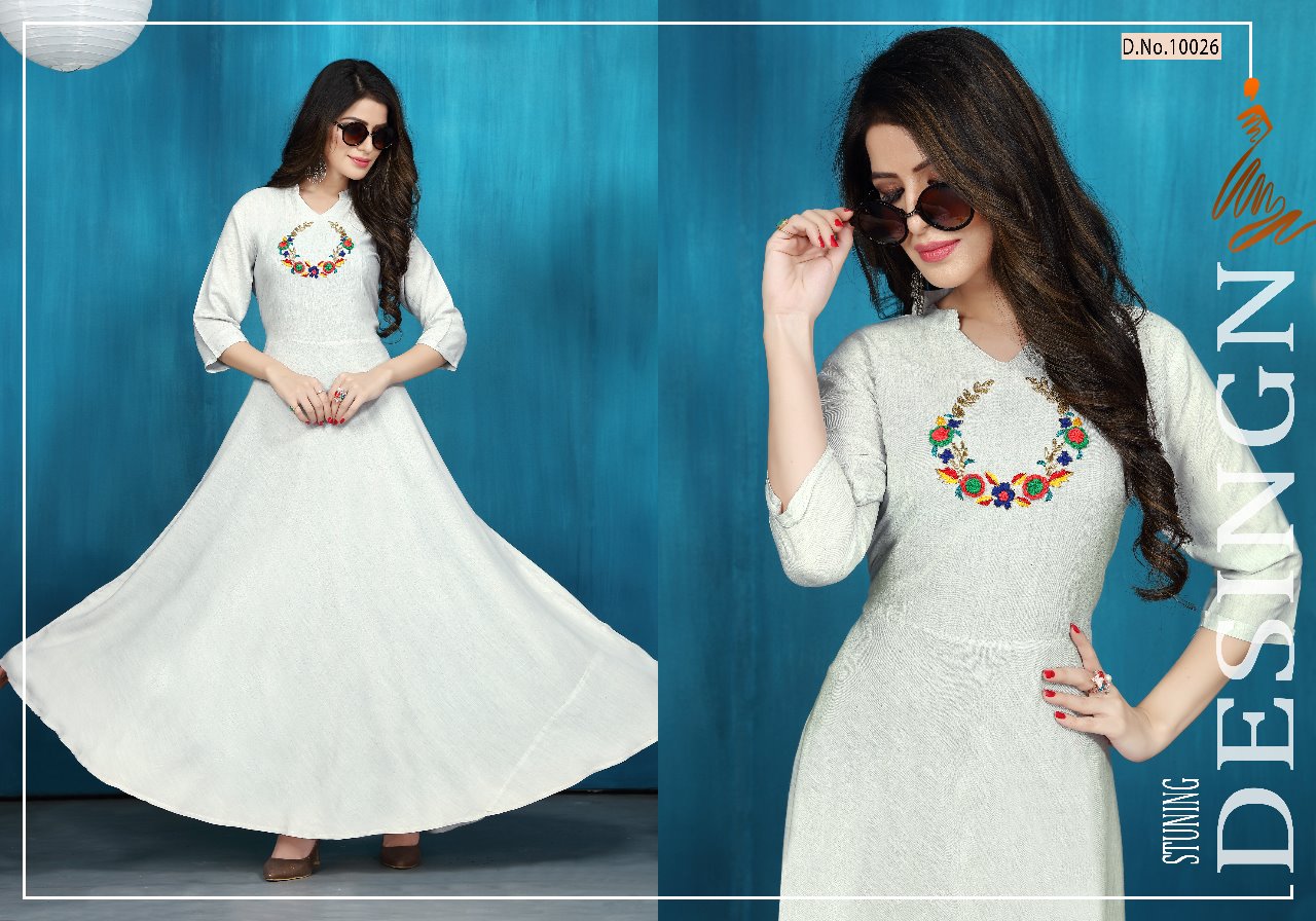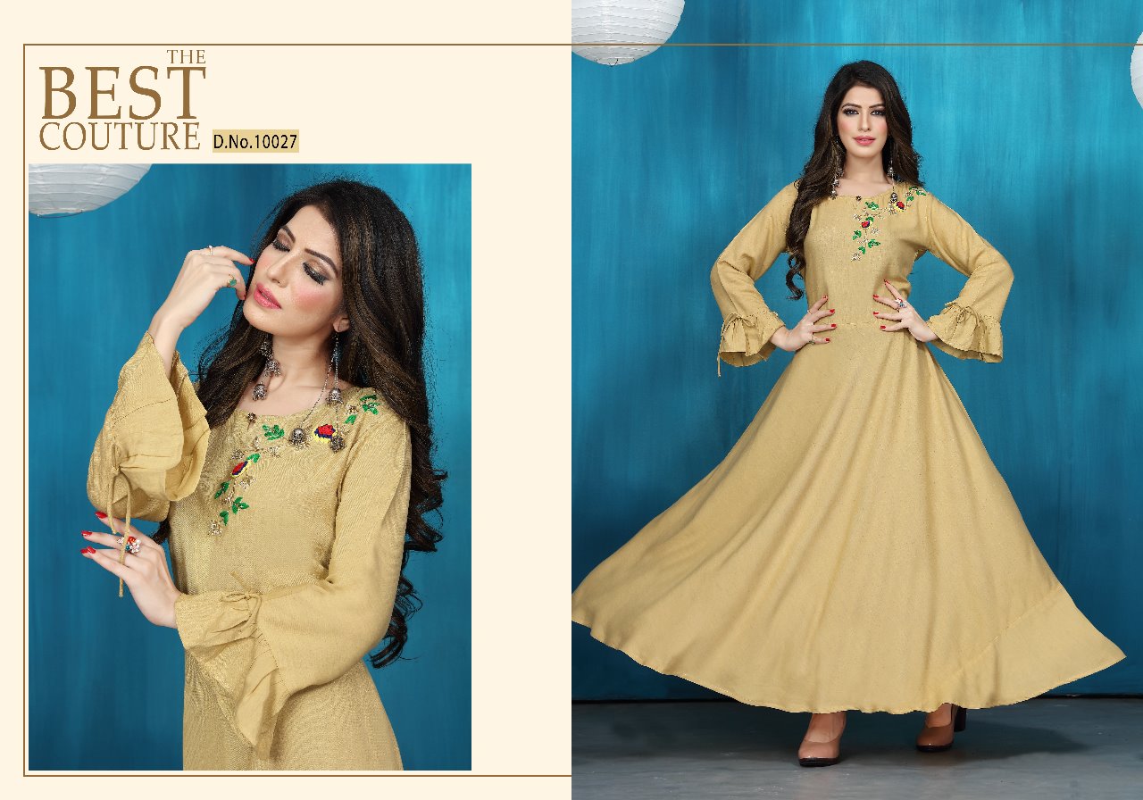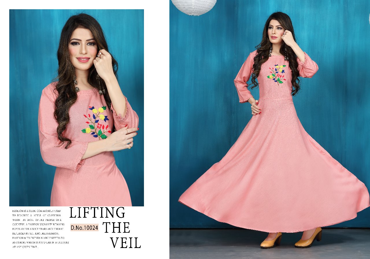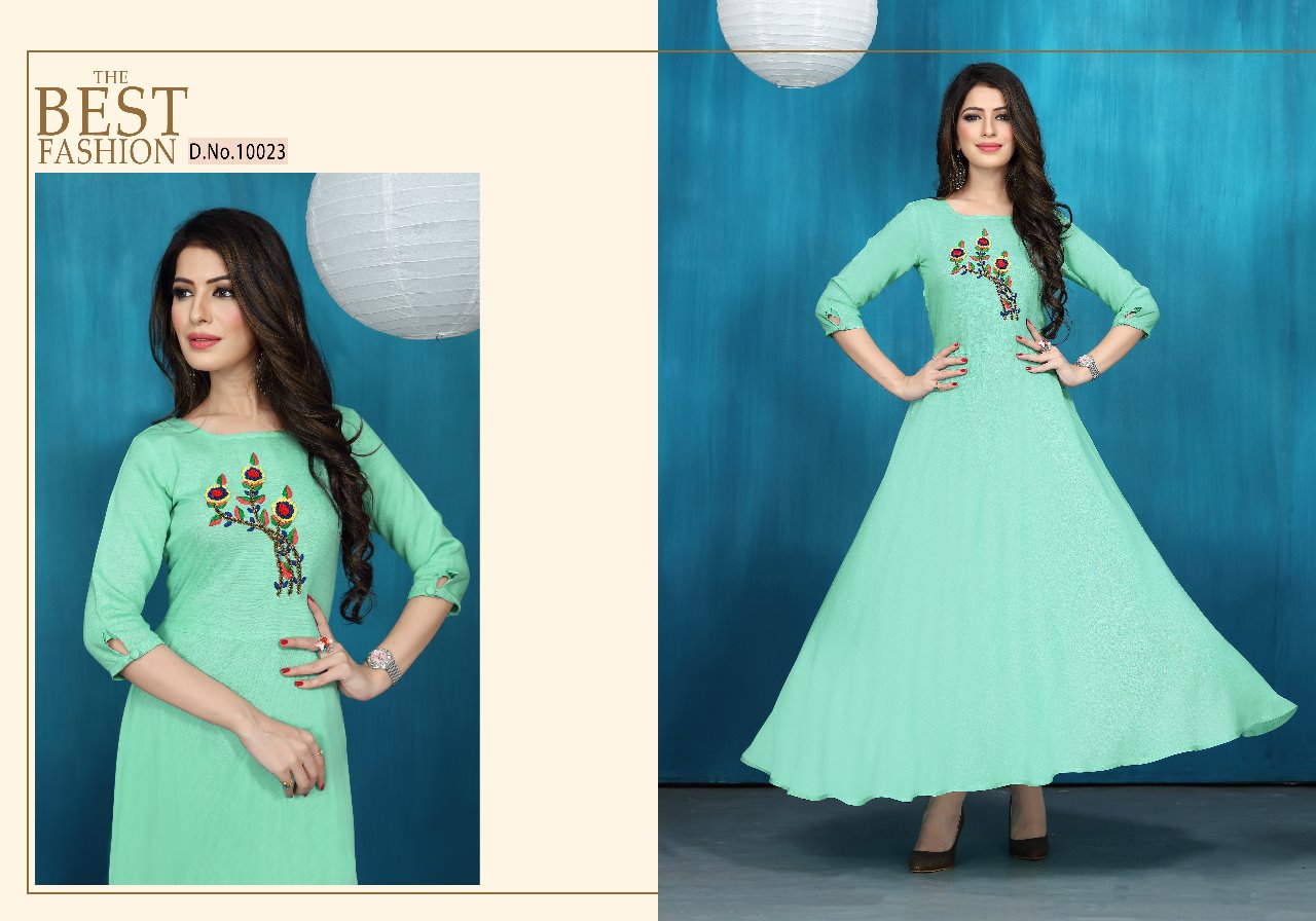*Neeti creation* *Presents* *"NAAZ"* We are presenting our exclusive bright colour collection a season to enjoy winter as well as marriage function. So we are hear to change your wardrobe with elegance colour to enjoy the function. ```Fabric:- ``` *HEAVY RAYON FLEXIBLE WITH EXCLUSIVE HAND WORK* ```Size:- ``` *M(38),L(40), XL(42),XXL(44)* *LENGTH :- 56"+* *NOTE :- 6 designs only* ```Rate:- ``` ?*825.00*? (Applicable GST extra). *DISPATCHED ON 12/01/2019* |