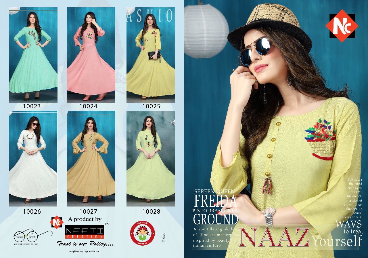 Naaz By Neeti Creation Reyon Designer Party Wear Kurtis Wholesale Supplier Surat