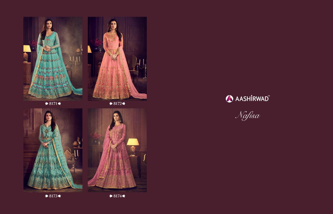 Buy Online Nafisa By Aashirwad Series 8171 To 8174 Designer Party Wear Suits Wholesale Supplier India 4 Pcs of Full Catalogue at Wholesale Price. Looking for Nafisa By Aashirwad Series 8171 To 8174 Designer Party Wear Suits Wholesale Supplier India Full Catalouge at Best Price? Buy Now Nafisa By Aashirwad Series 8171 To 8174 Designer Party Wear Suits Wholesale Supplier India at Wholesale Rate of Rs 13180 with Total 4 Pcs from authroized dealer and supplier of AASHIRWAD Brand. Cost of Each piece is just only Rs 3295 which is very low and affordable price to resale the product in your retail store ,This is Surat based Wholesale Supplier & Dealer of AASHIRWAD Brand. Click on Brand name to Know more about AASHIRWAD Brand's products.Call or Whatsapp on 9898838984 for booking or enquiry